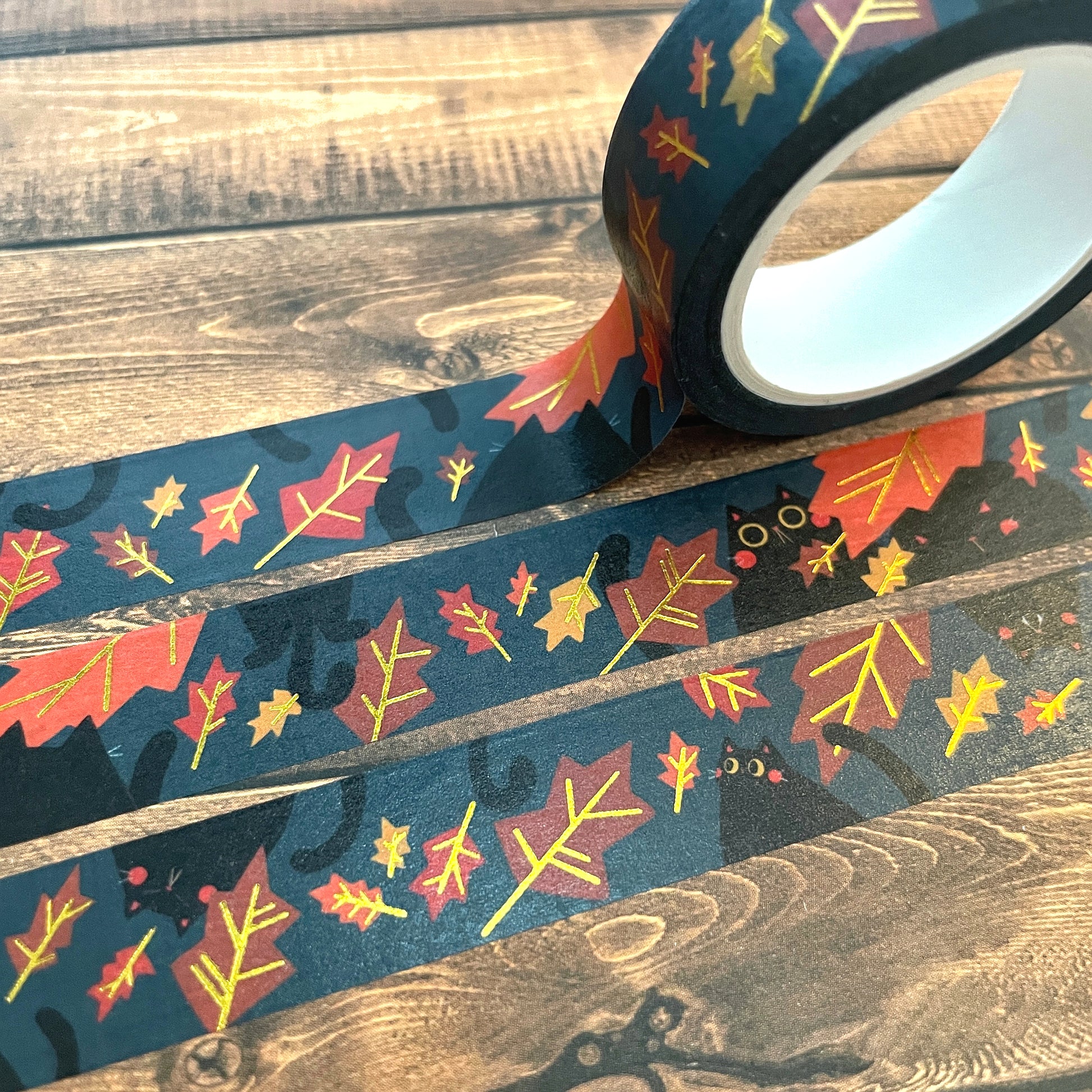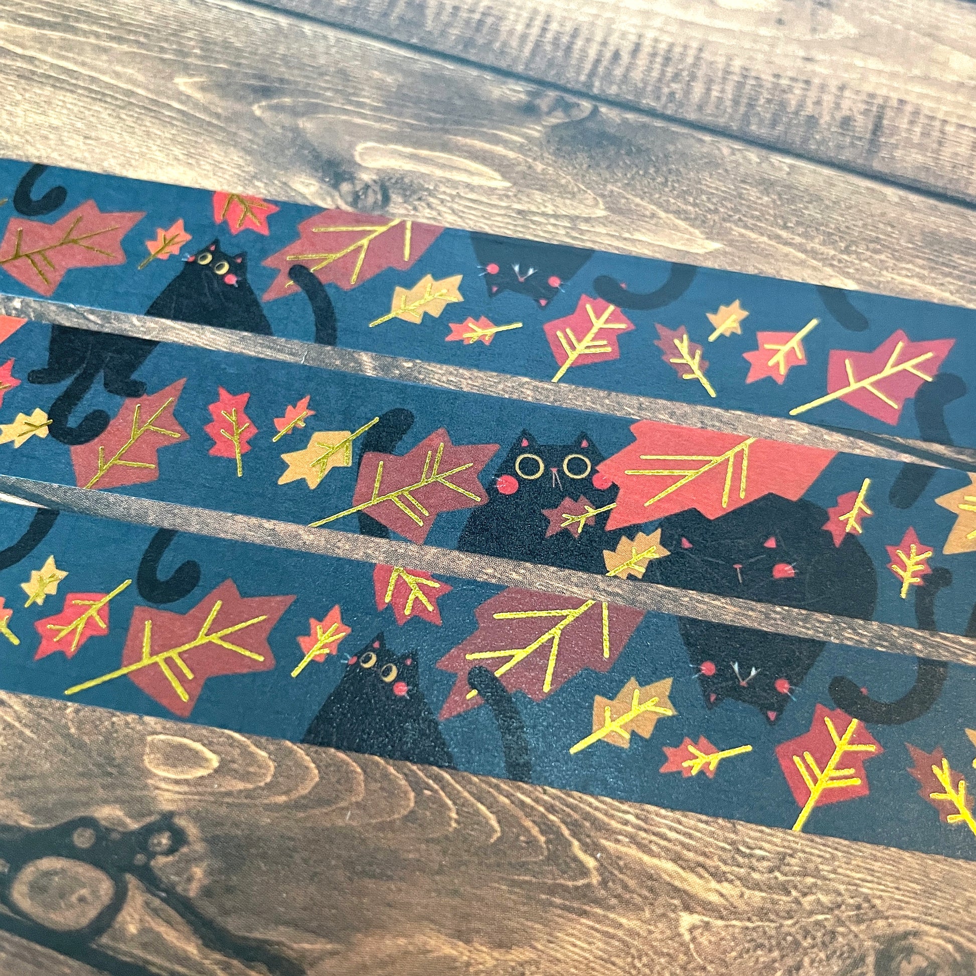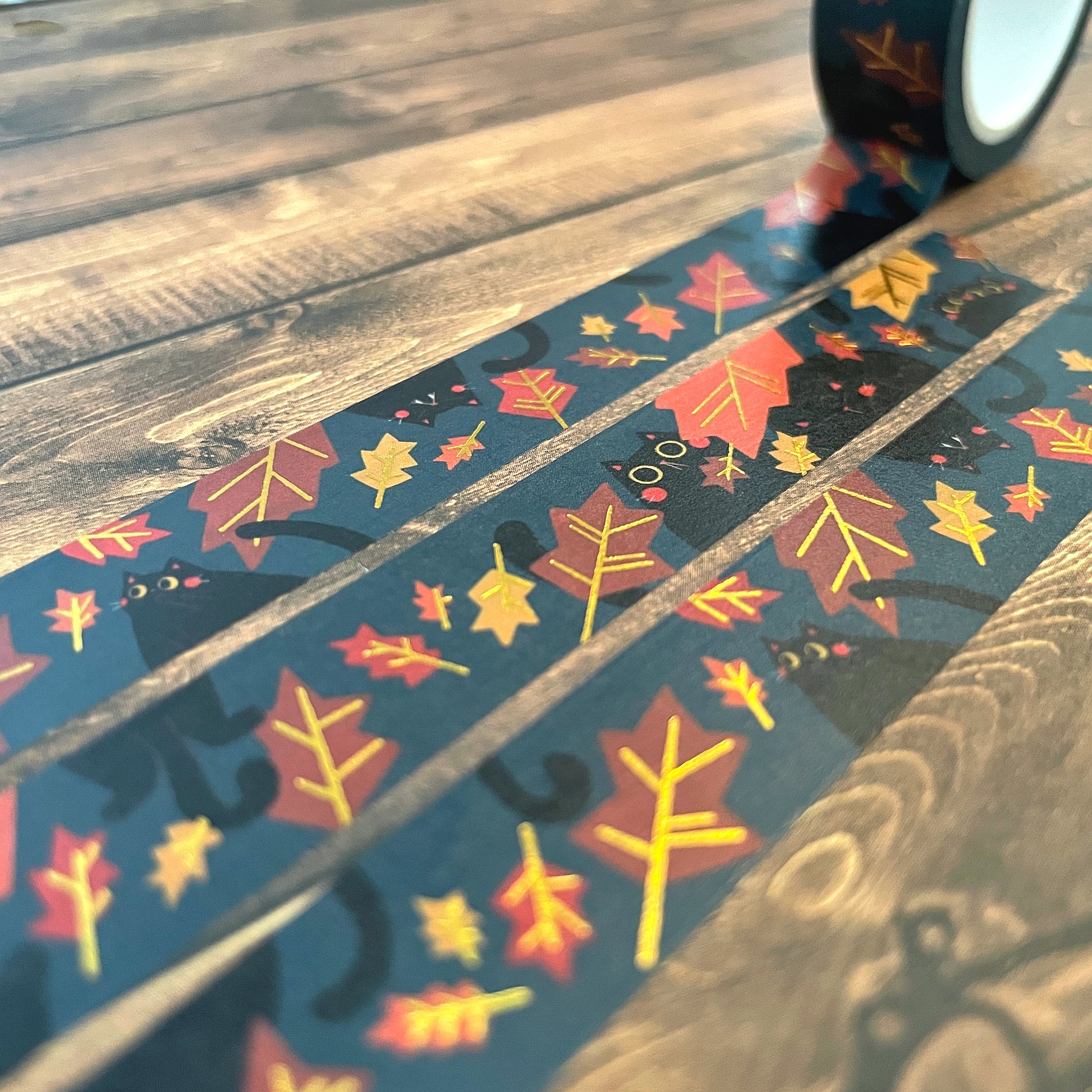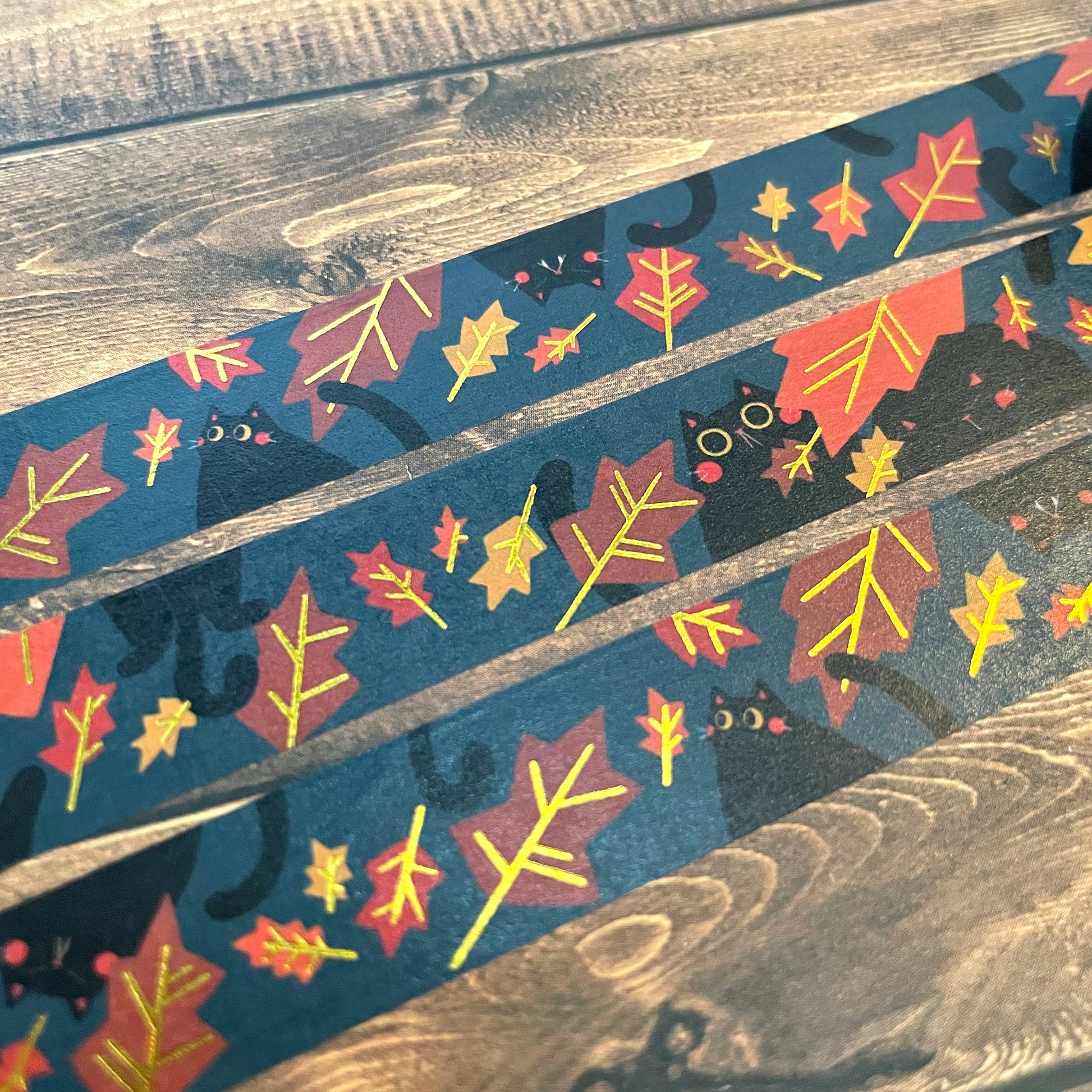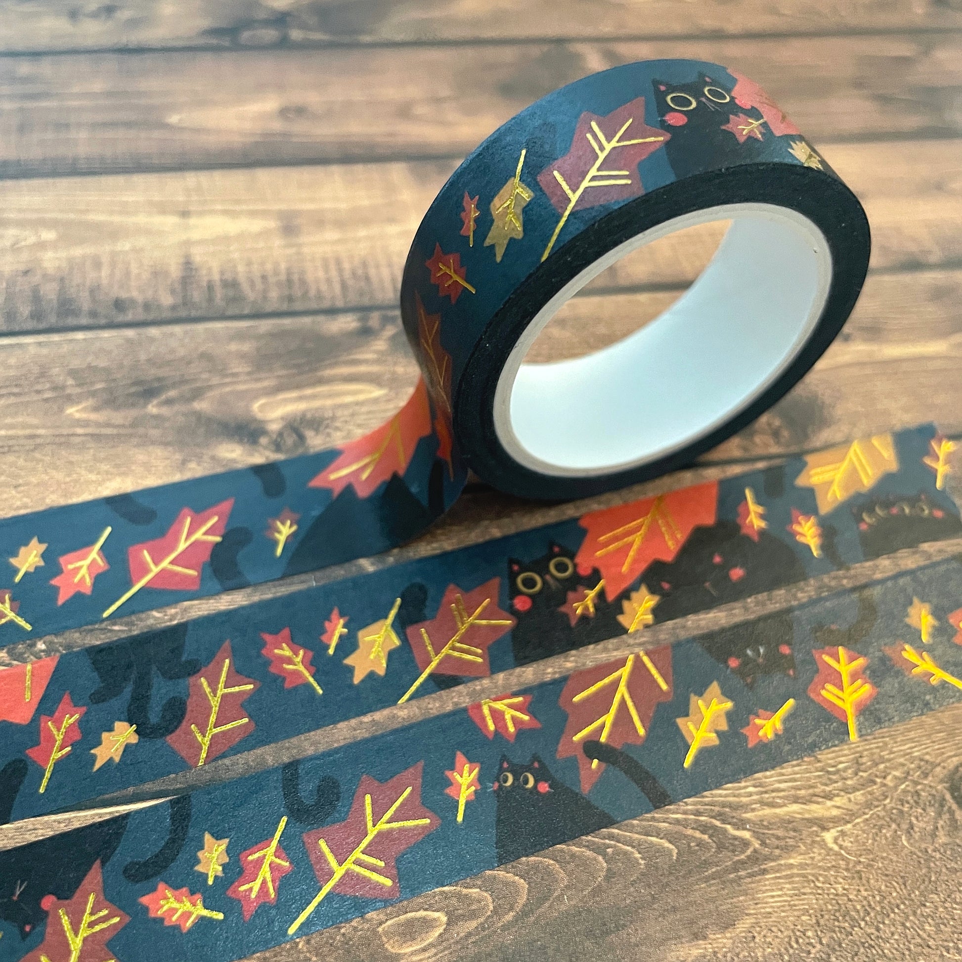 Black Autumn Cats with Gold Foil Detail 15mm Standard Washi Tape