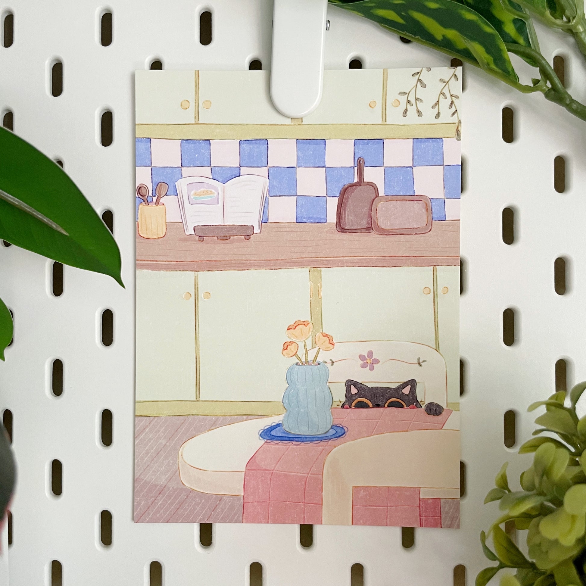 Black Cat Kitchen Soft Touch Postcard Art Print