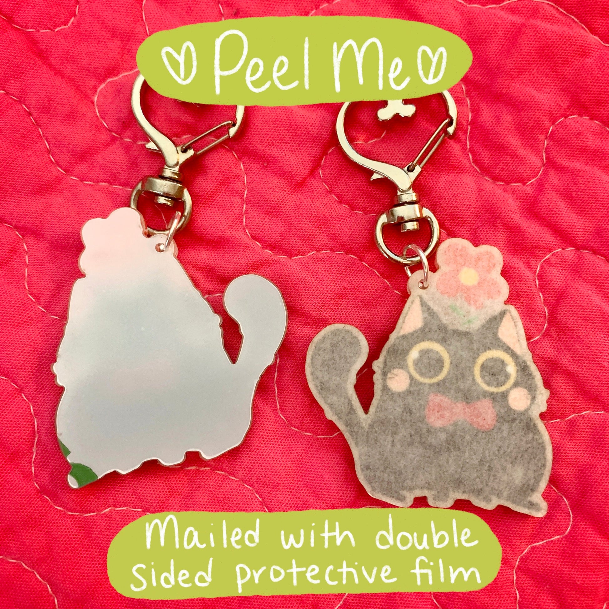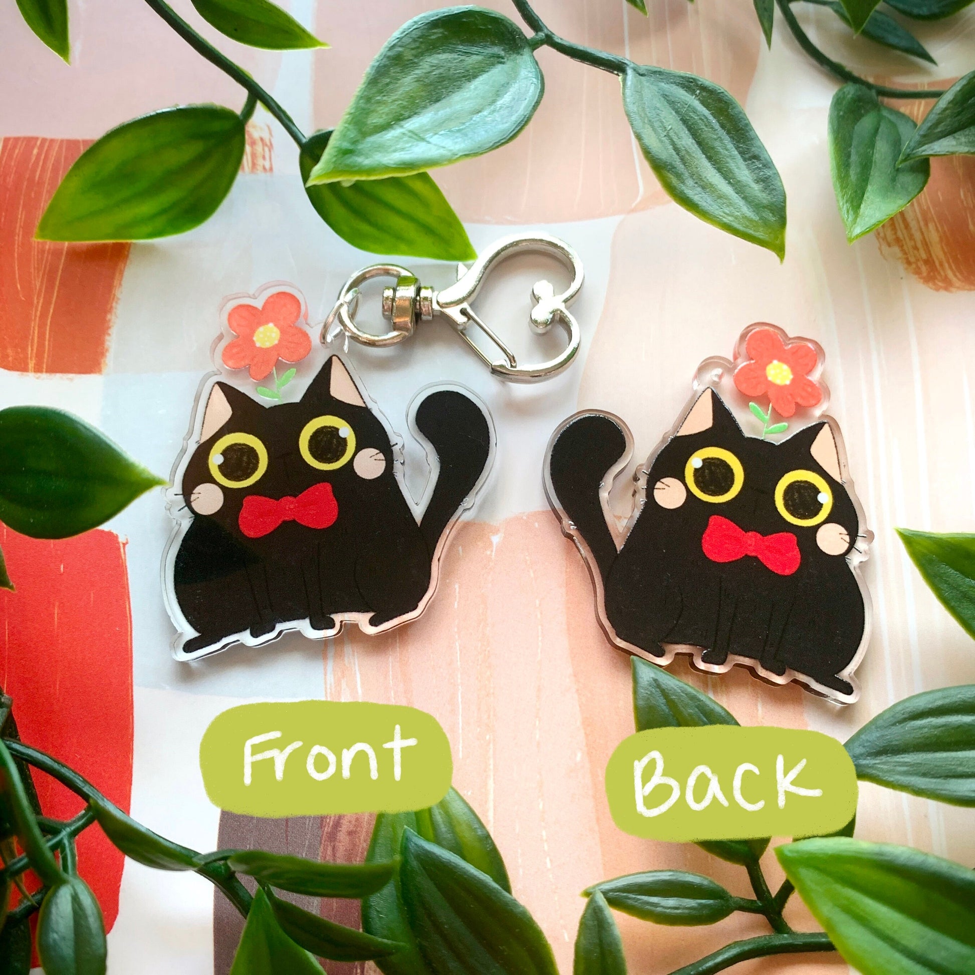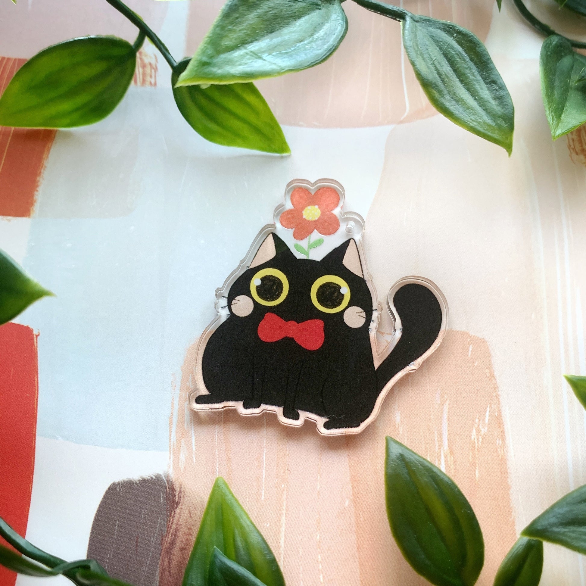 Black Cat with Flower Acrylic Keychain