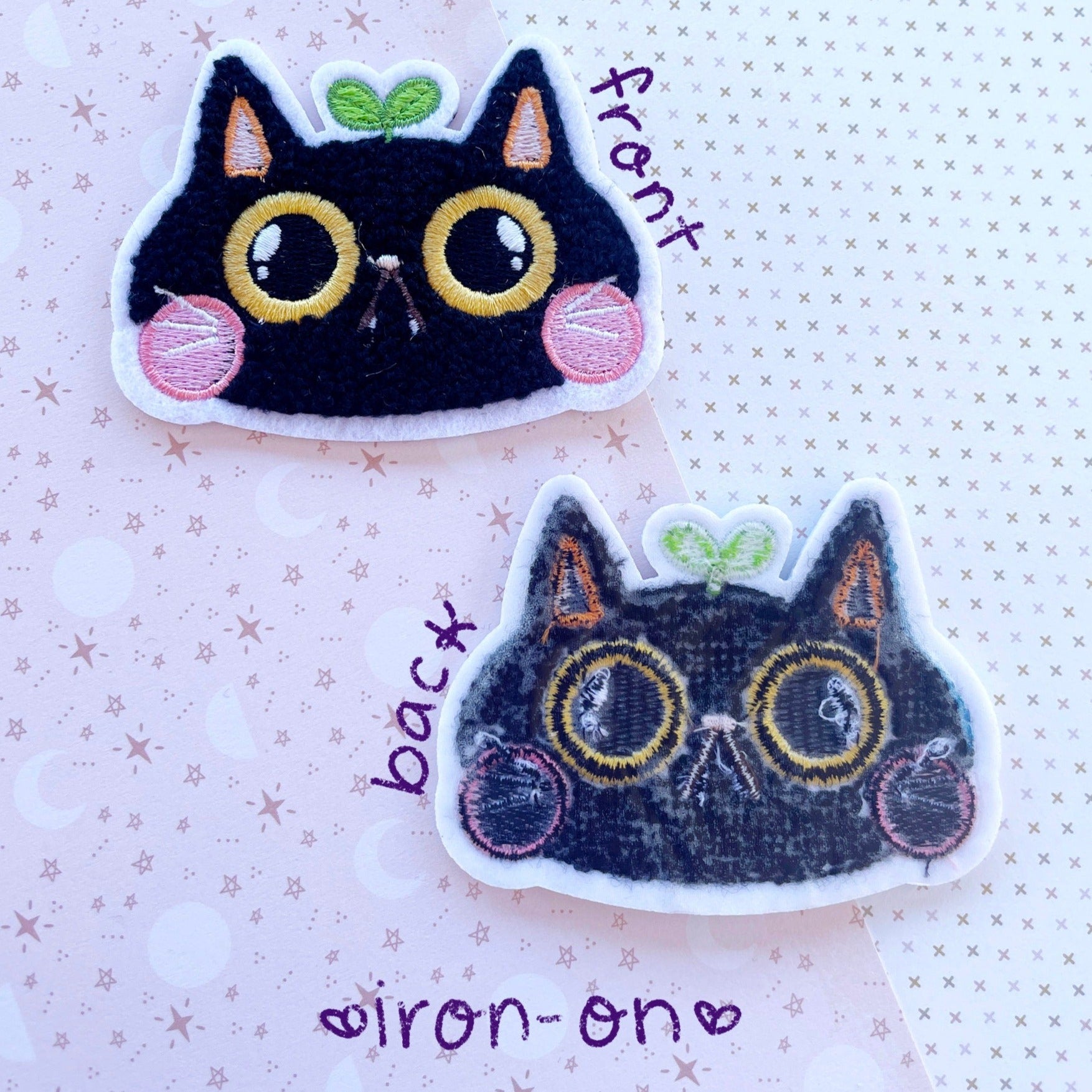 Black Cat with Sprout Chenille Embroidered Iron On Patch