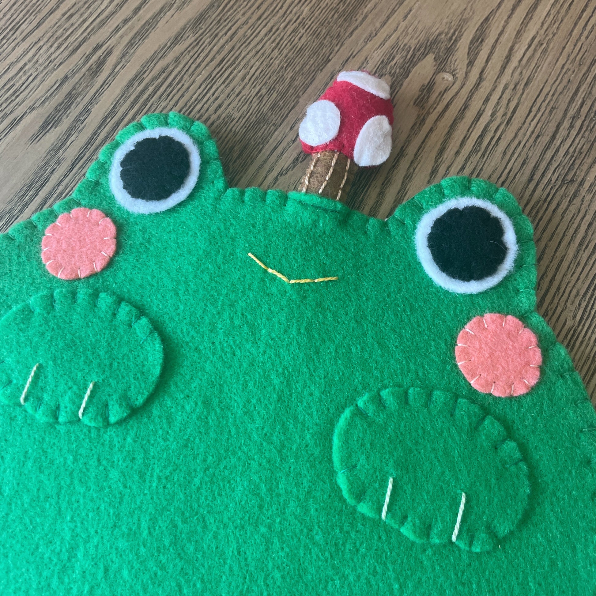 - The bodies are made from Kunin Eco-fi Plus Premium Felt. This felt is 100% polyester and made from recycled post consumer plastic bottles. It is thick and sturdy, making it perfect for supporting your pin collection! The face details and mushrooms are a mix of Kunin felt and various thinner wool felt. The mushrooms are stuffed with a basic fiber fill with hand embroidered details.