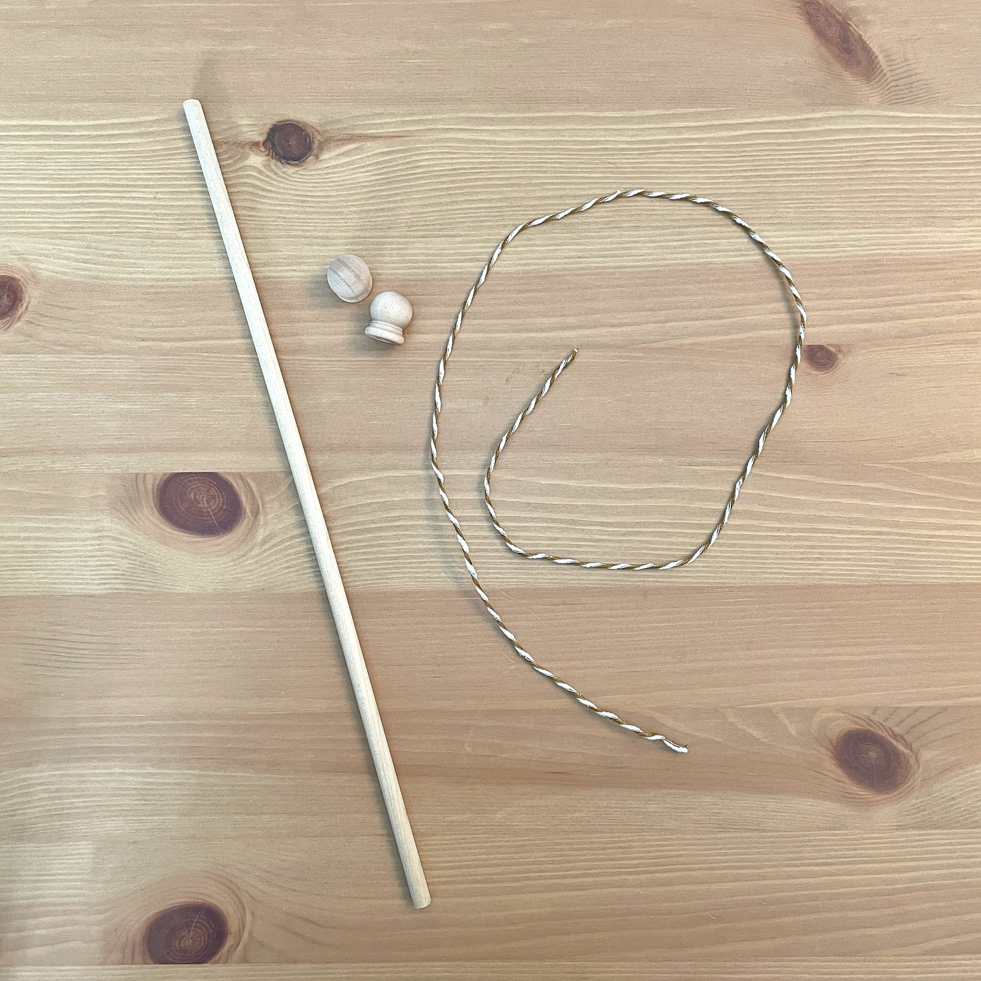 - All frogs will come with a string, wooden dowel rod and wood end caps. The caps are a tight fit so it will take a little effort to push them on. The wood pieces are unfinished. You can stain them, paint them or leave them as they are! There may be some splinters or dents but I quality check to make sure they aren’t too bad.