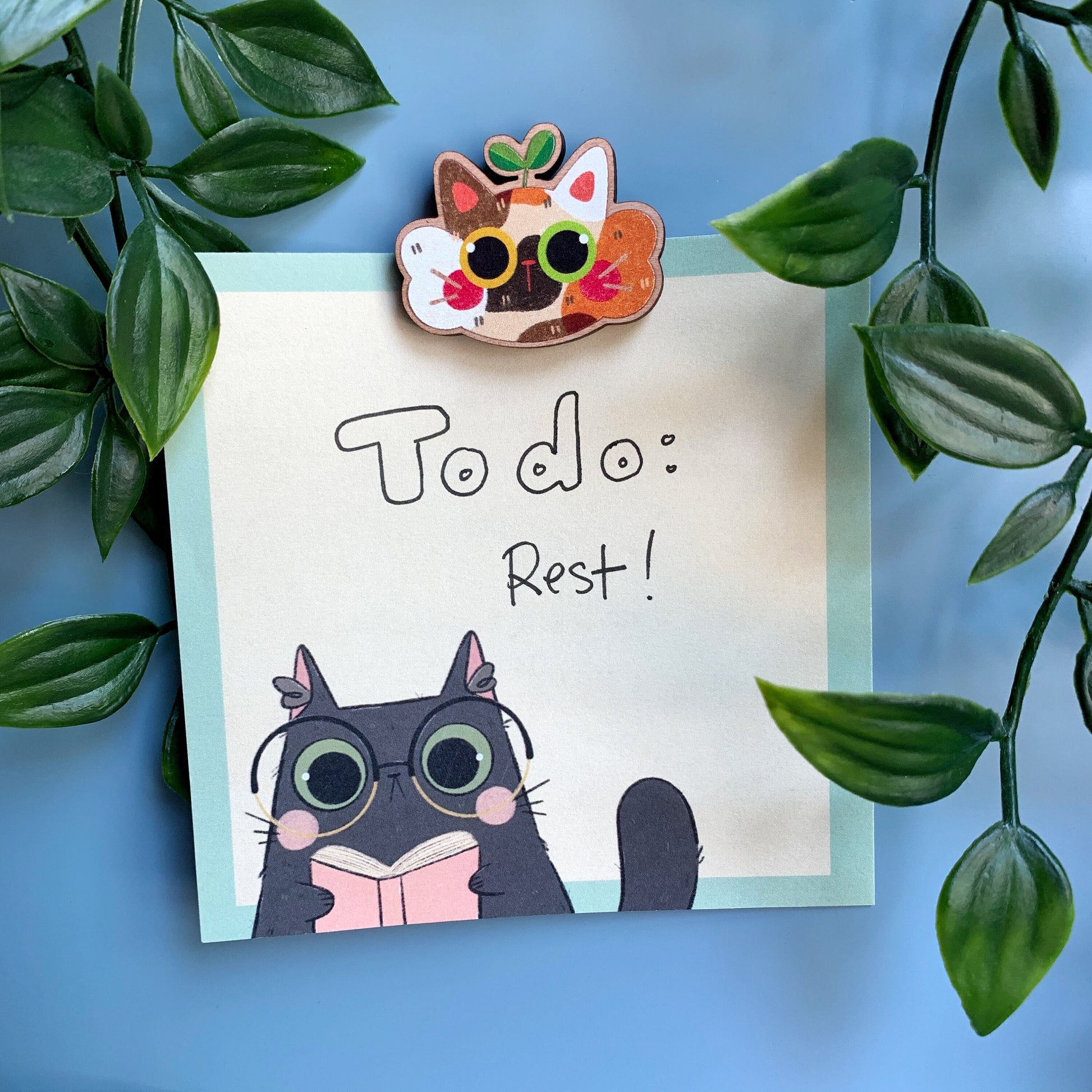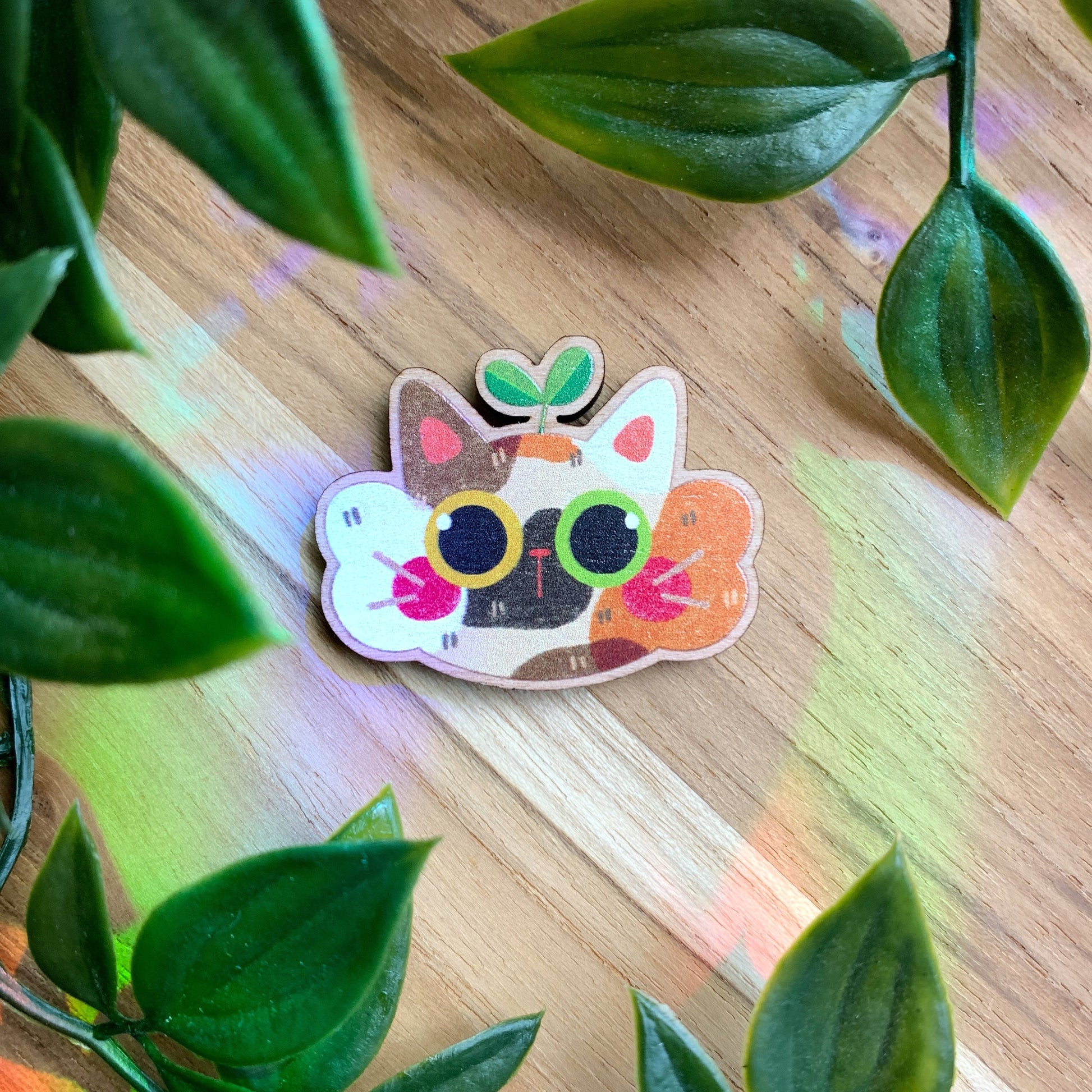 One Calico Cat wood magnet