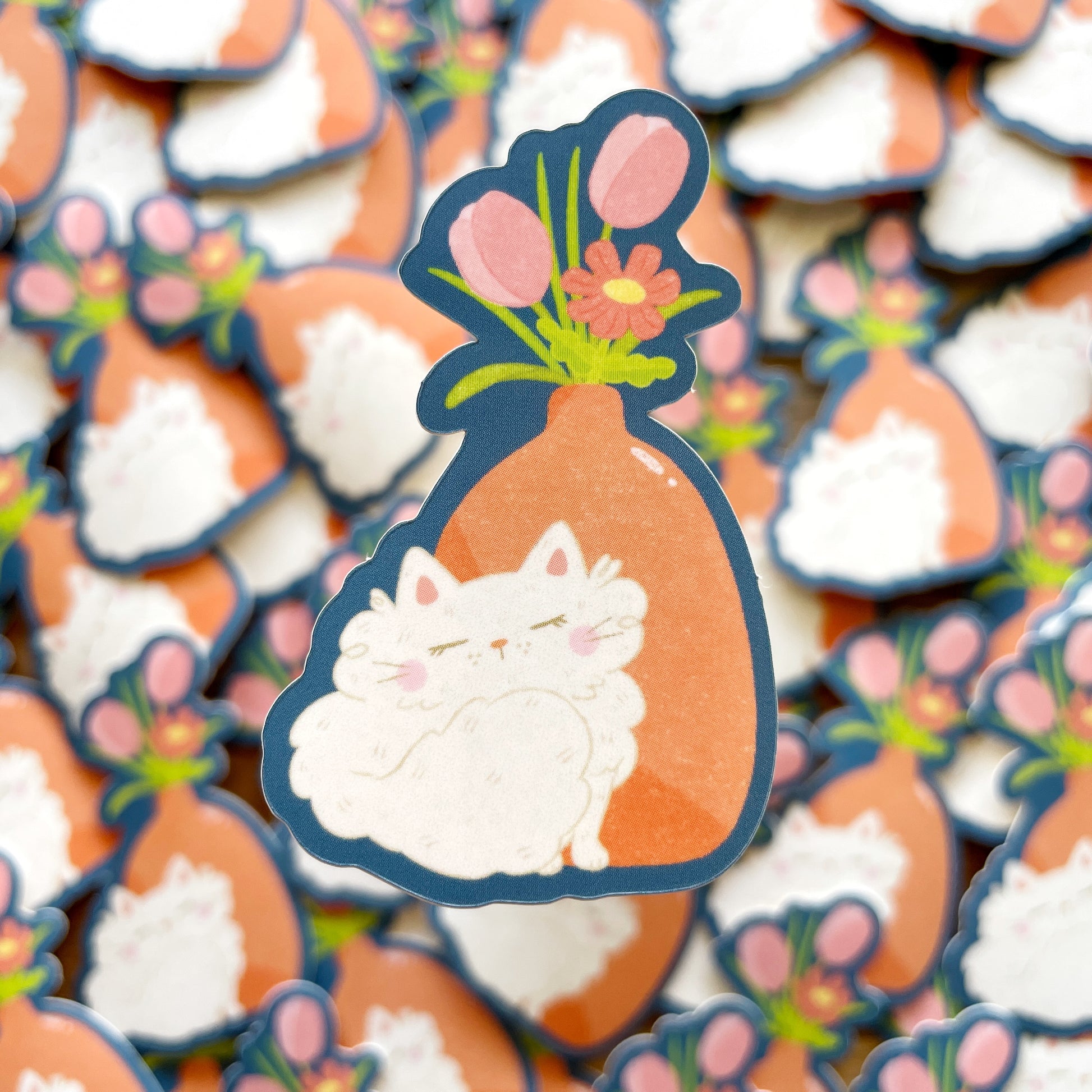 Cat and Vase Satin Matte Die-cut Sticker