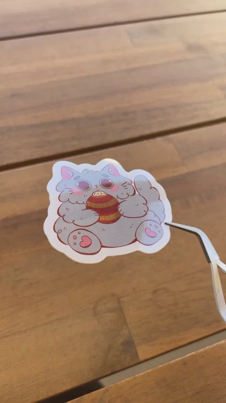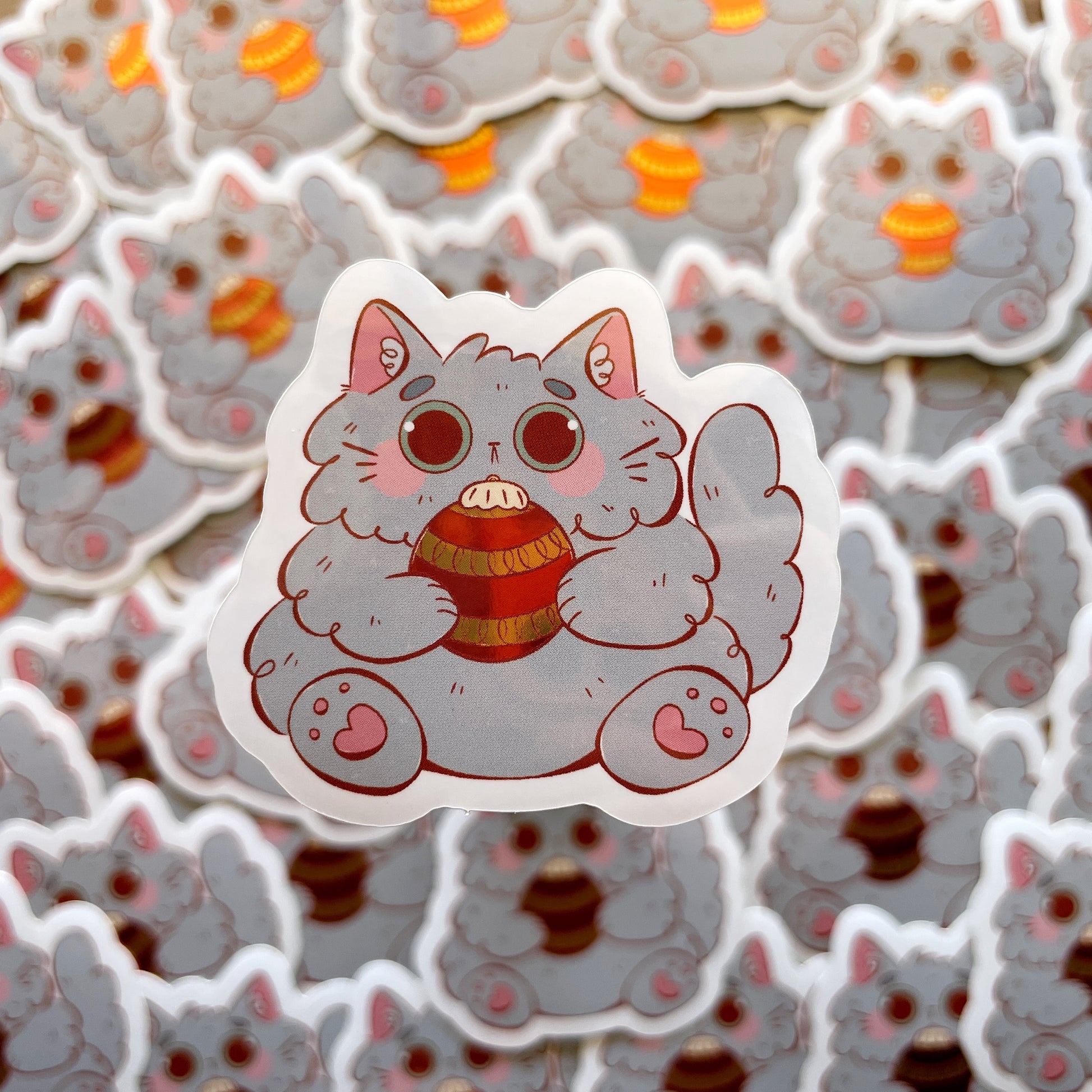 Cat with Ornament Glossy Mirror Die-cut Sticker