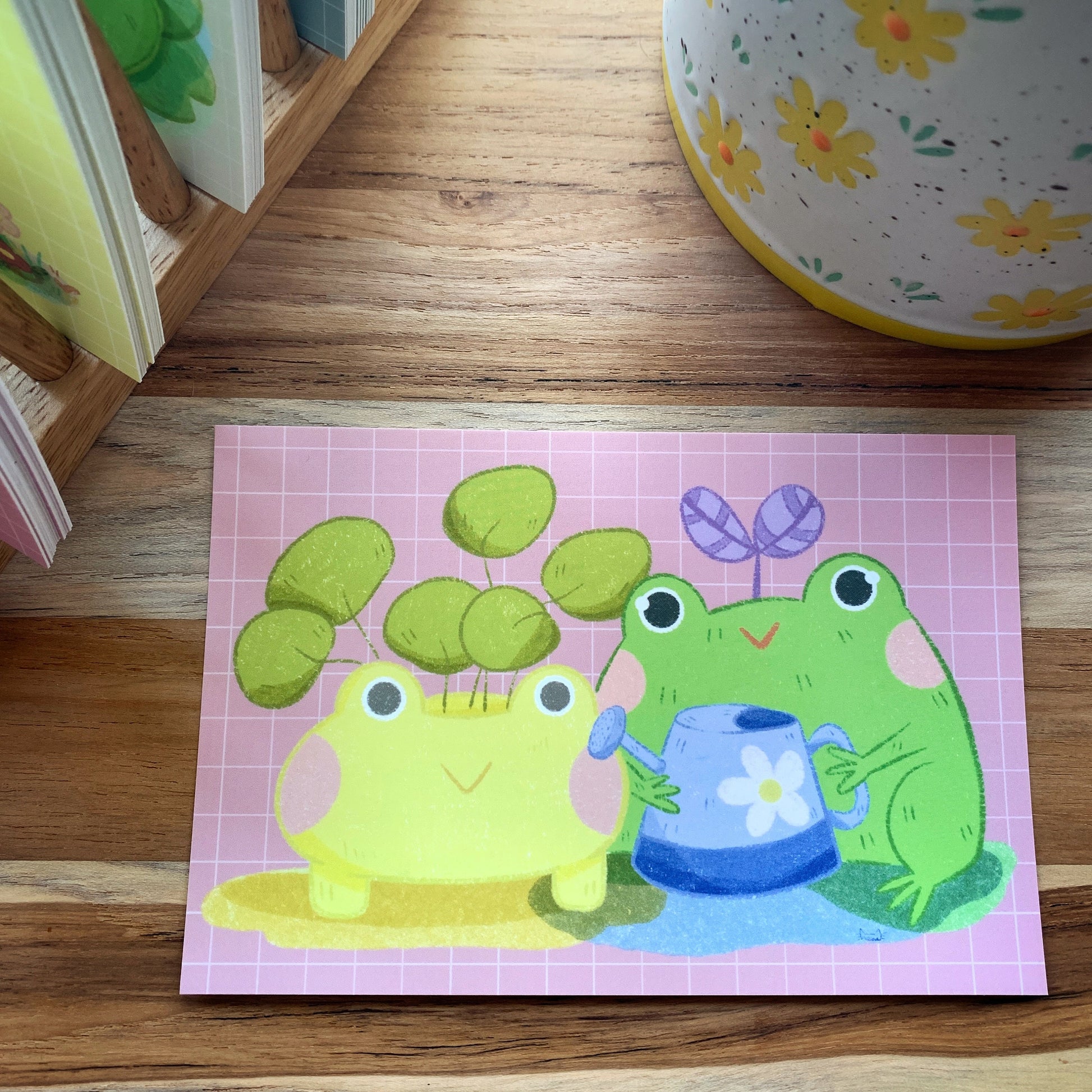A collection of frog illustration postcards available individually or as a set
