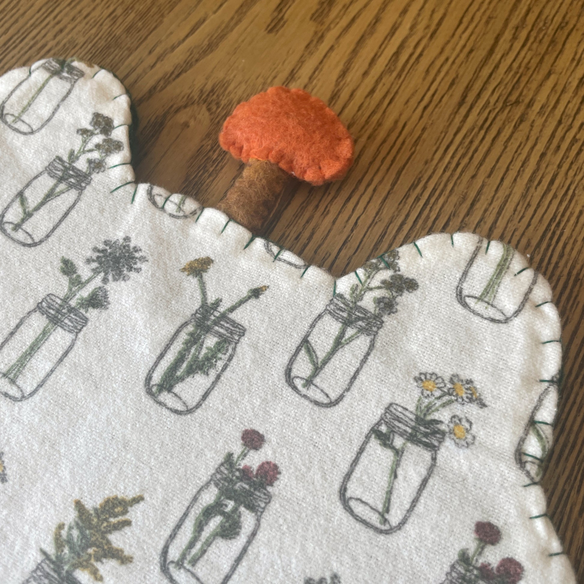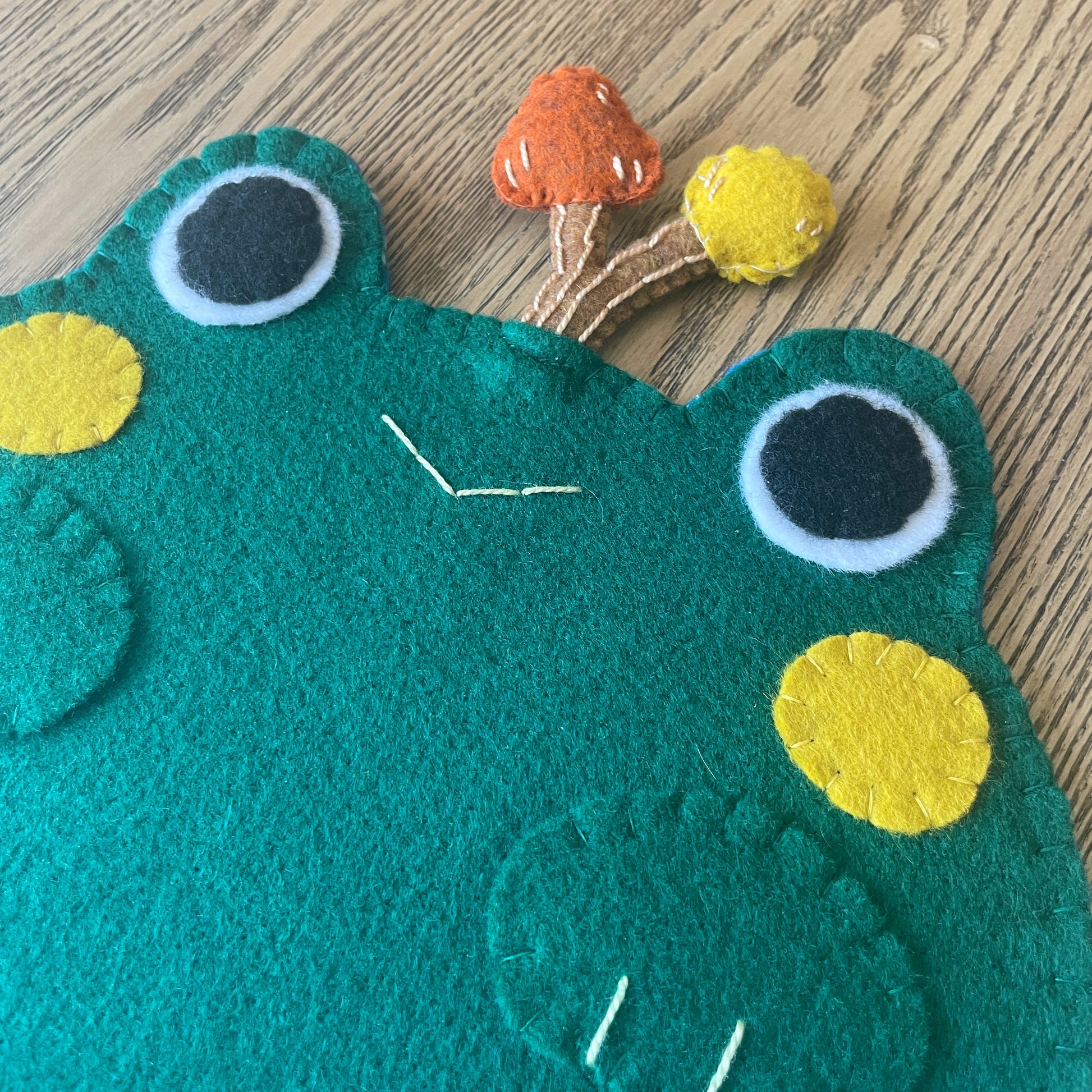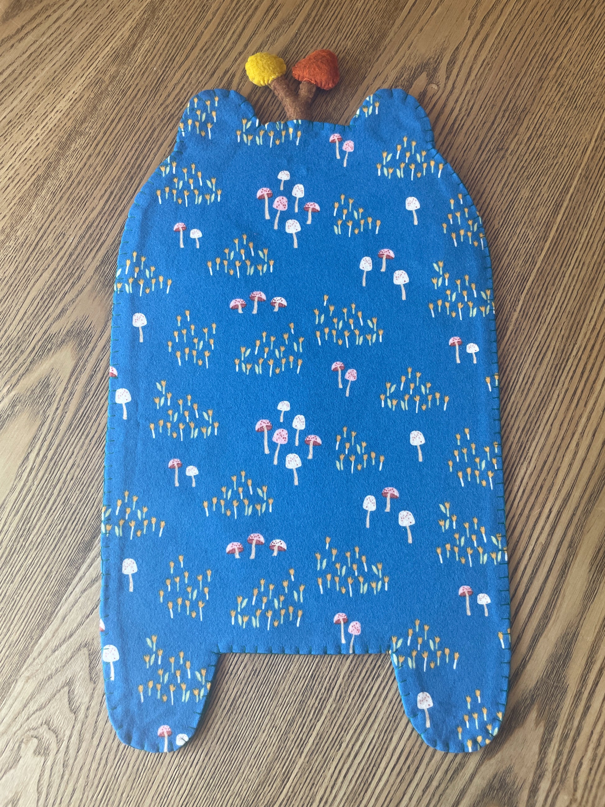 - The bodies are made from Kunin Eco-fi Plus Premium Felt. This felt is 100% polyester and made from recycled post consumer plastic bottles. It is thick and sturdy, making it perfect for supporting your pin collection! The face details and mushrooms are a mix of Kunin felt and various thinner wool felt. The mushrooms are stuffed with a basic fiber fill with hand embroidered details.