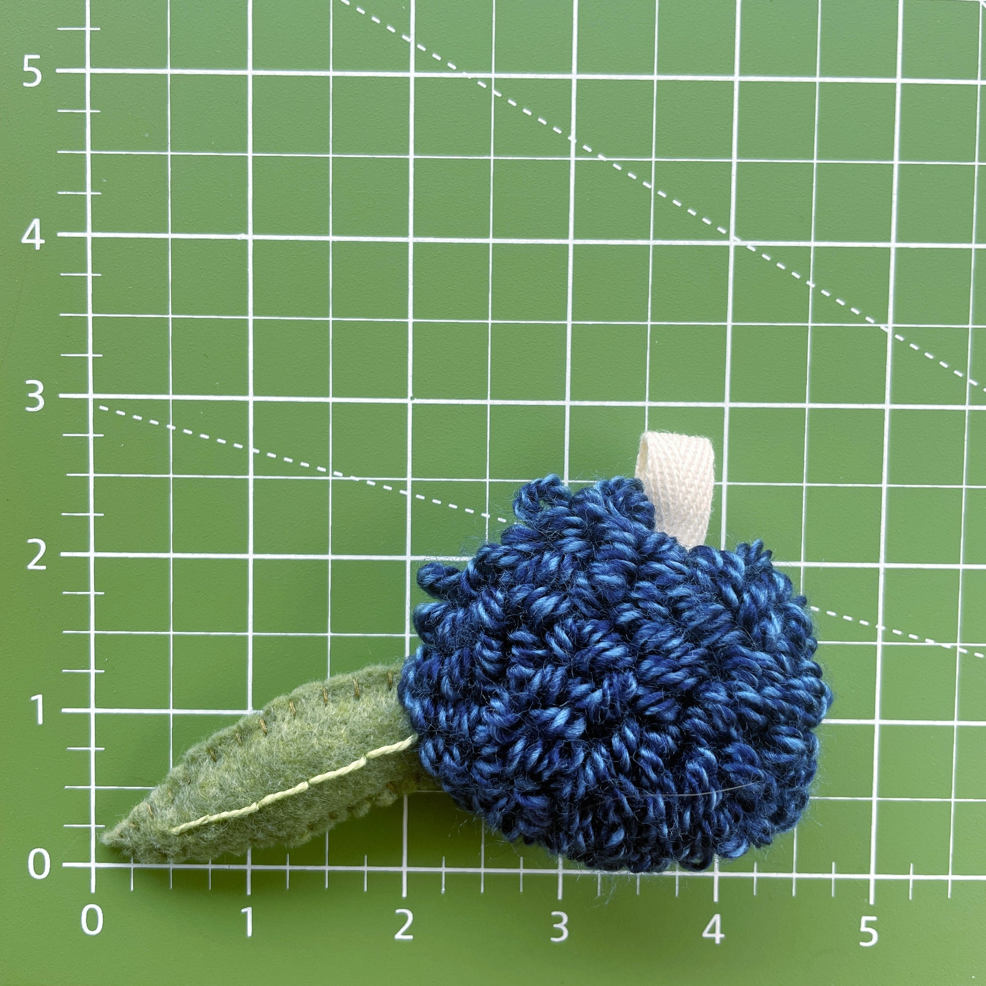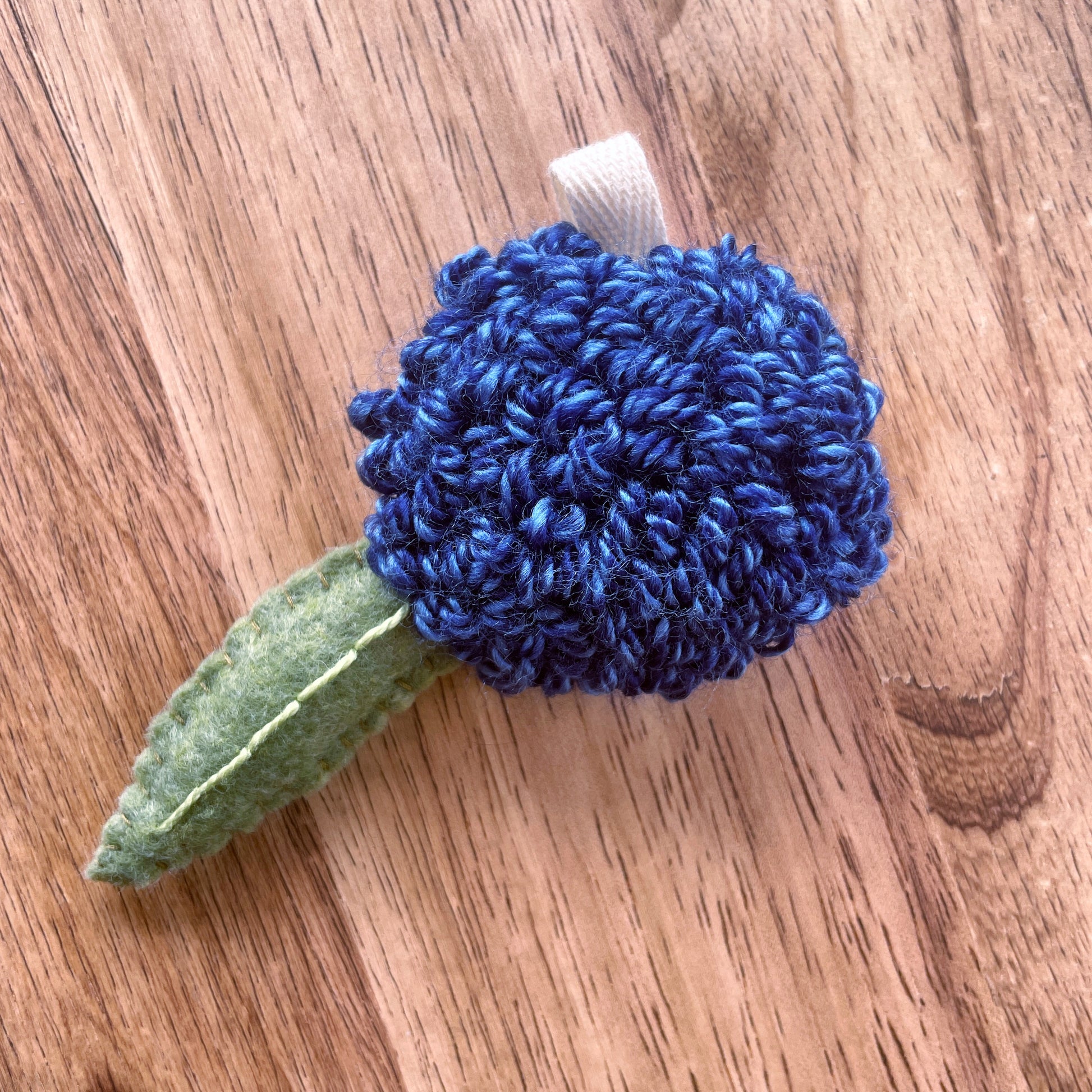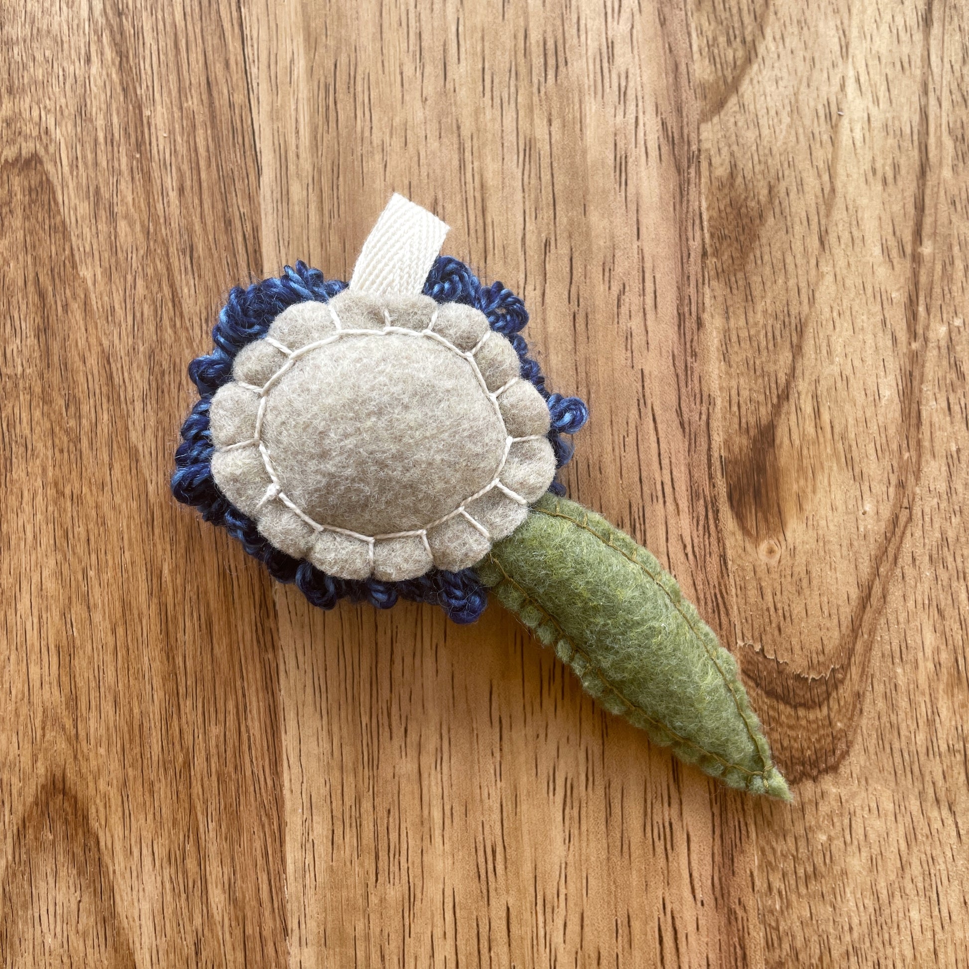Mini Blue Flower with Single Felt Leaf Plush Punch Needle Keychain