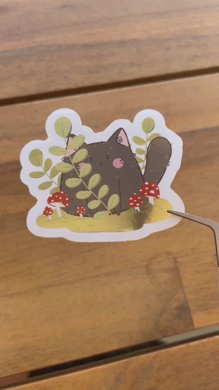 Mushroom Cat Glossy Mirror Die-cut Sticker