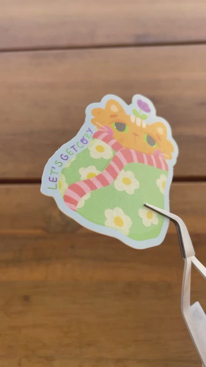 Orange Cat Let's Get Cozy Glitter Matte Die-cut Sticker