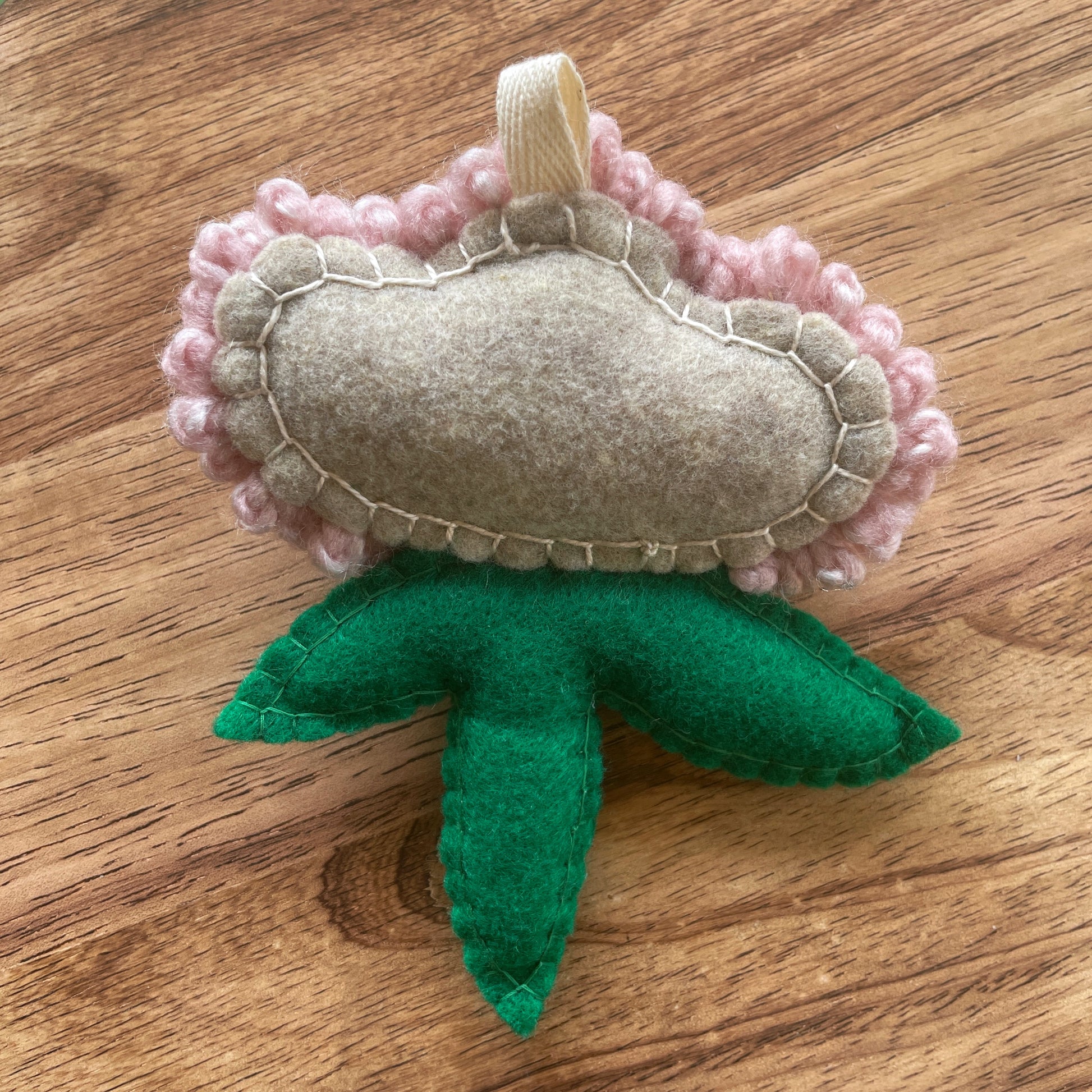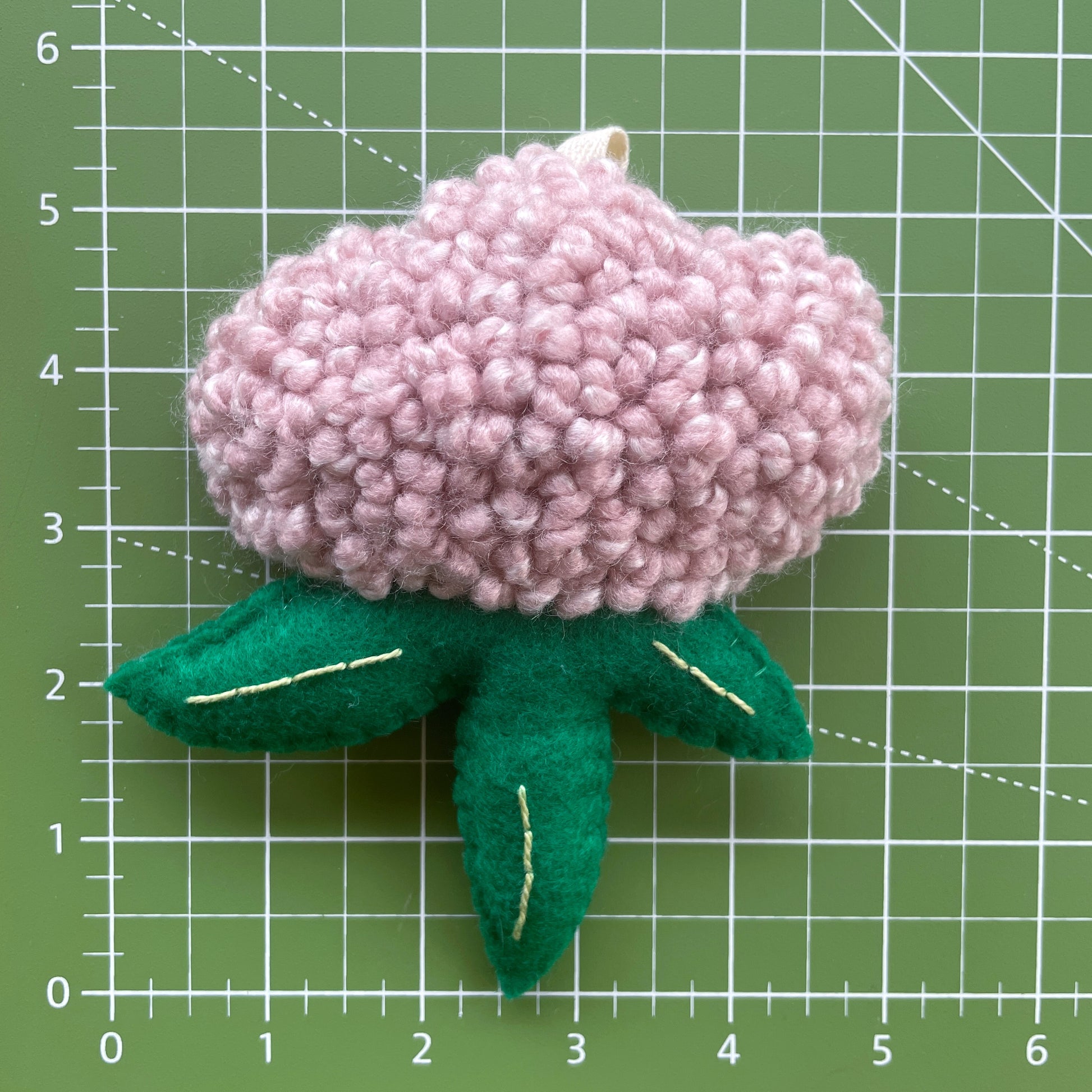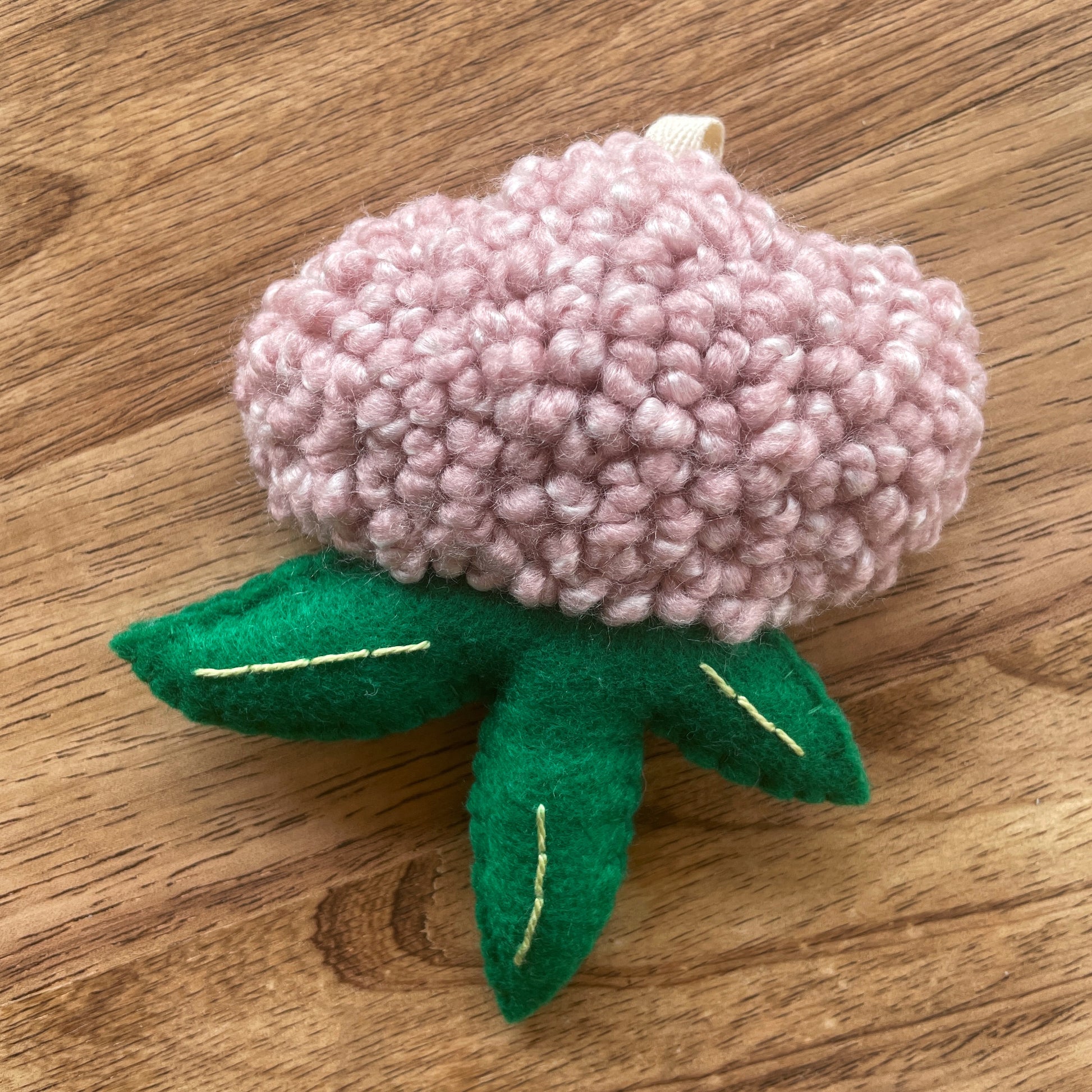 Pink Flower with Felt Leaves Plush Punch Needle Keychain