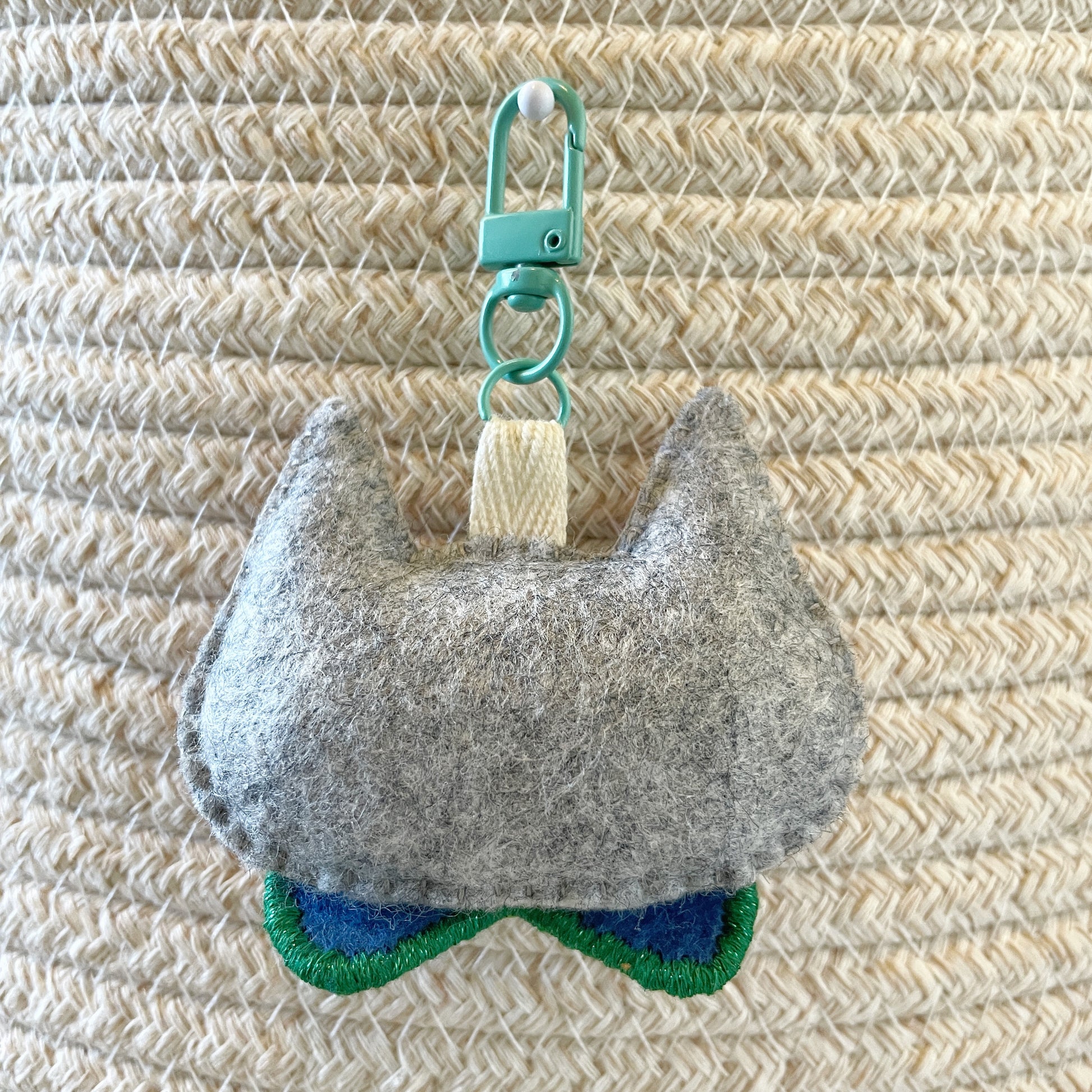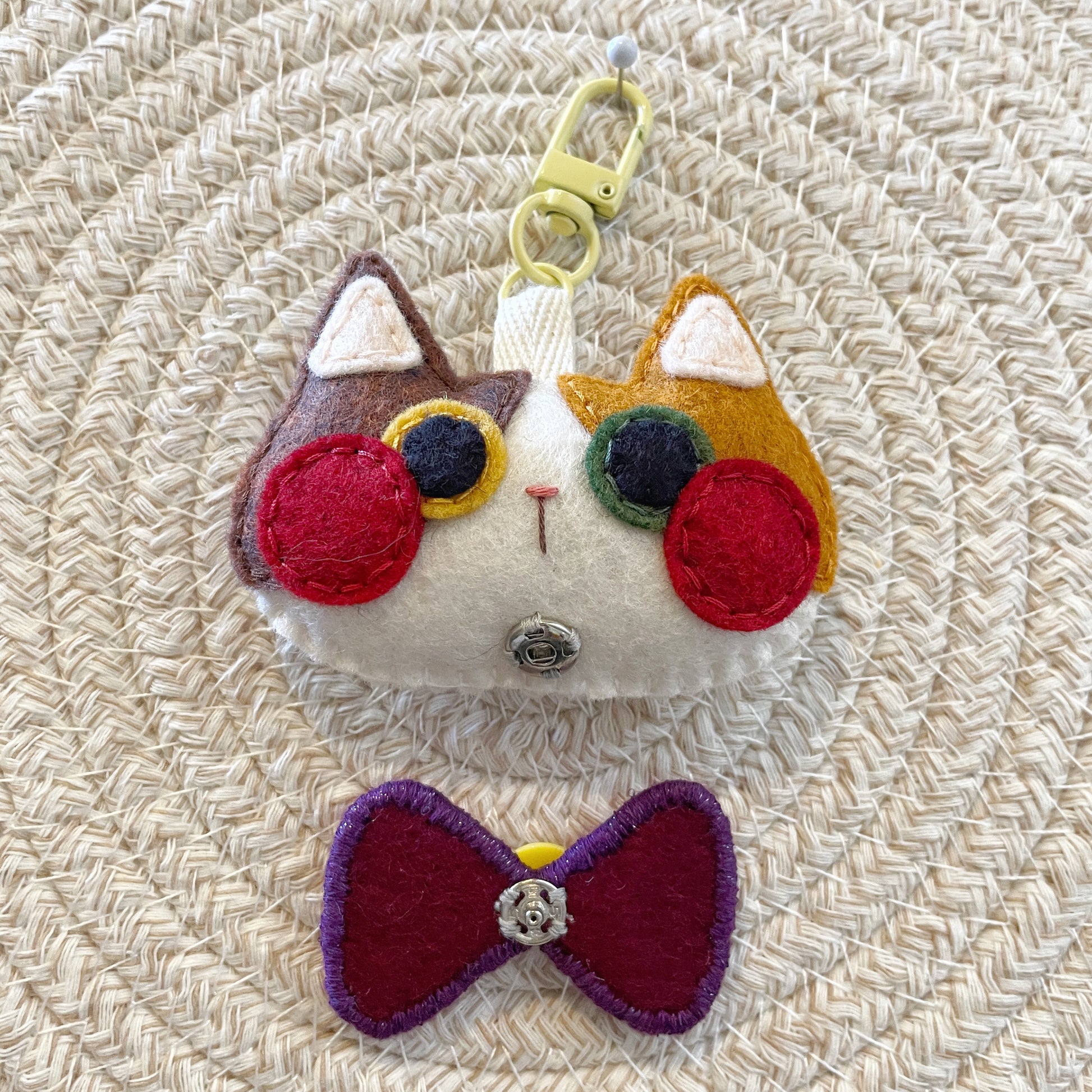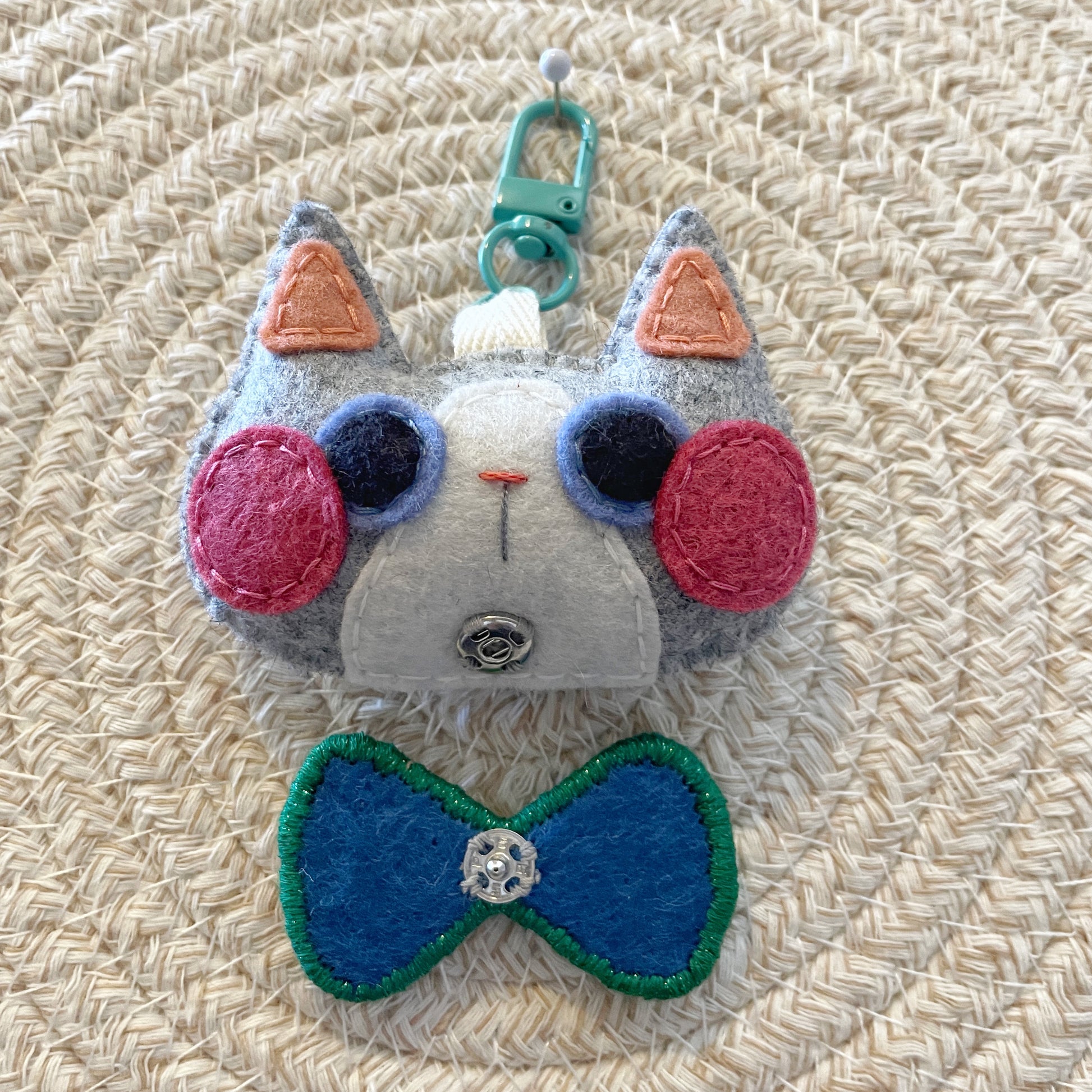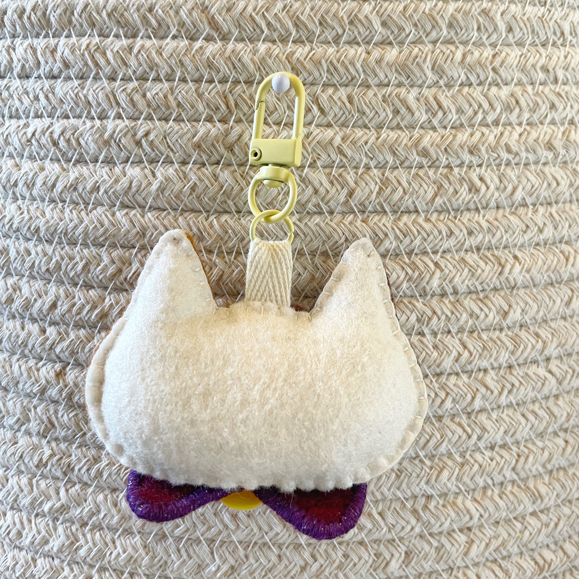 - Handmade felt plush keychain featuring a removable Pride flag themed bow-tie.