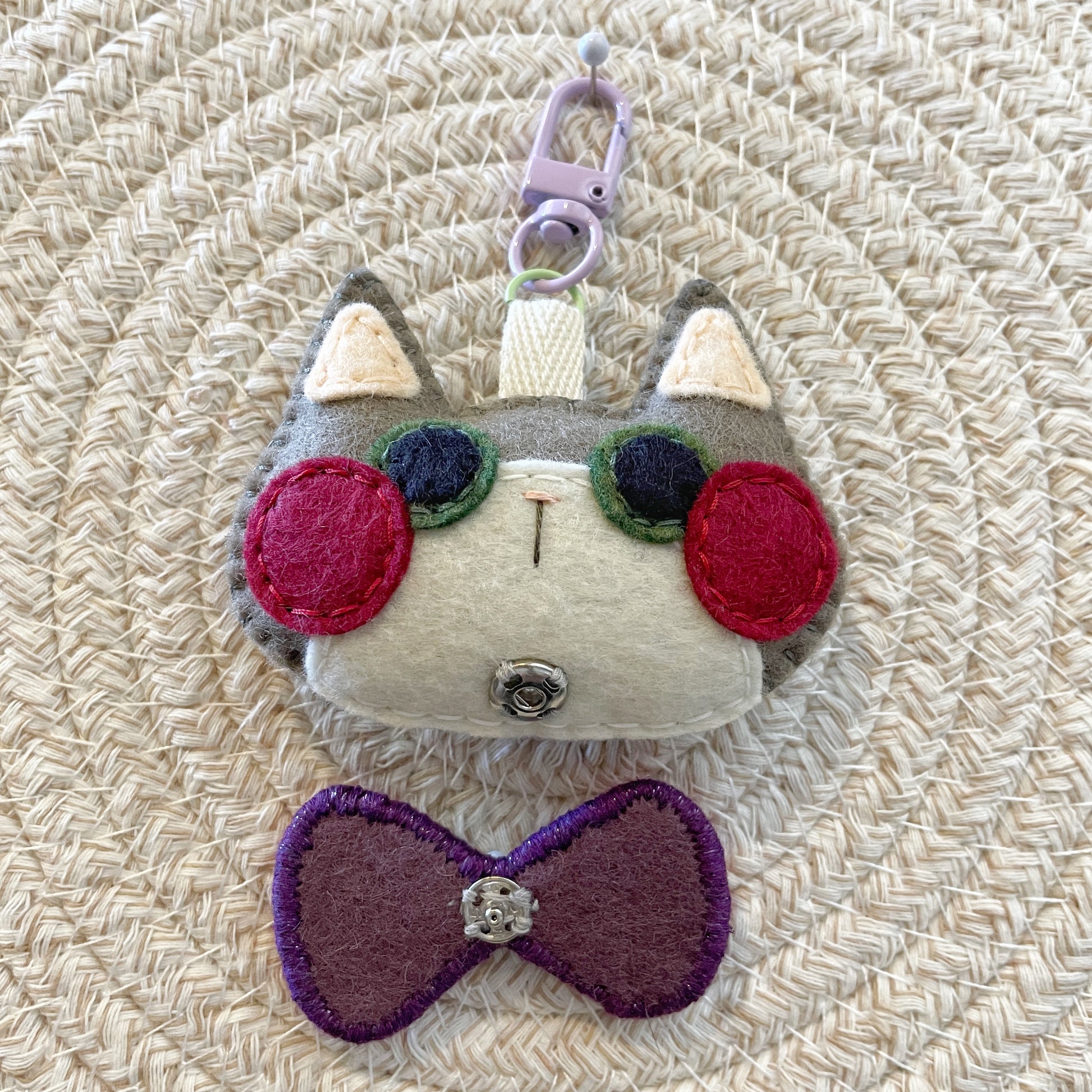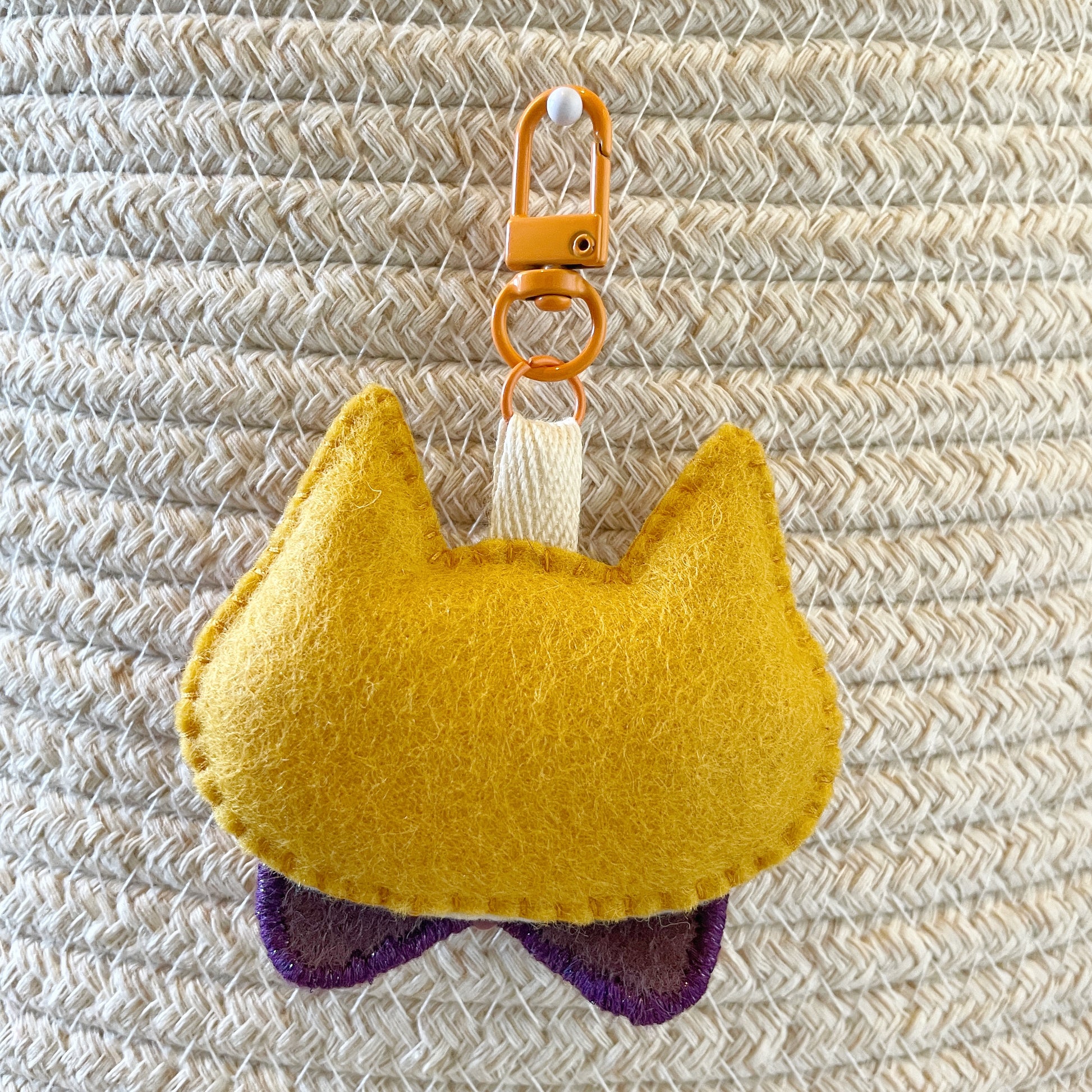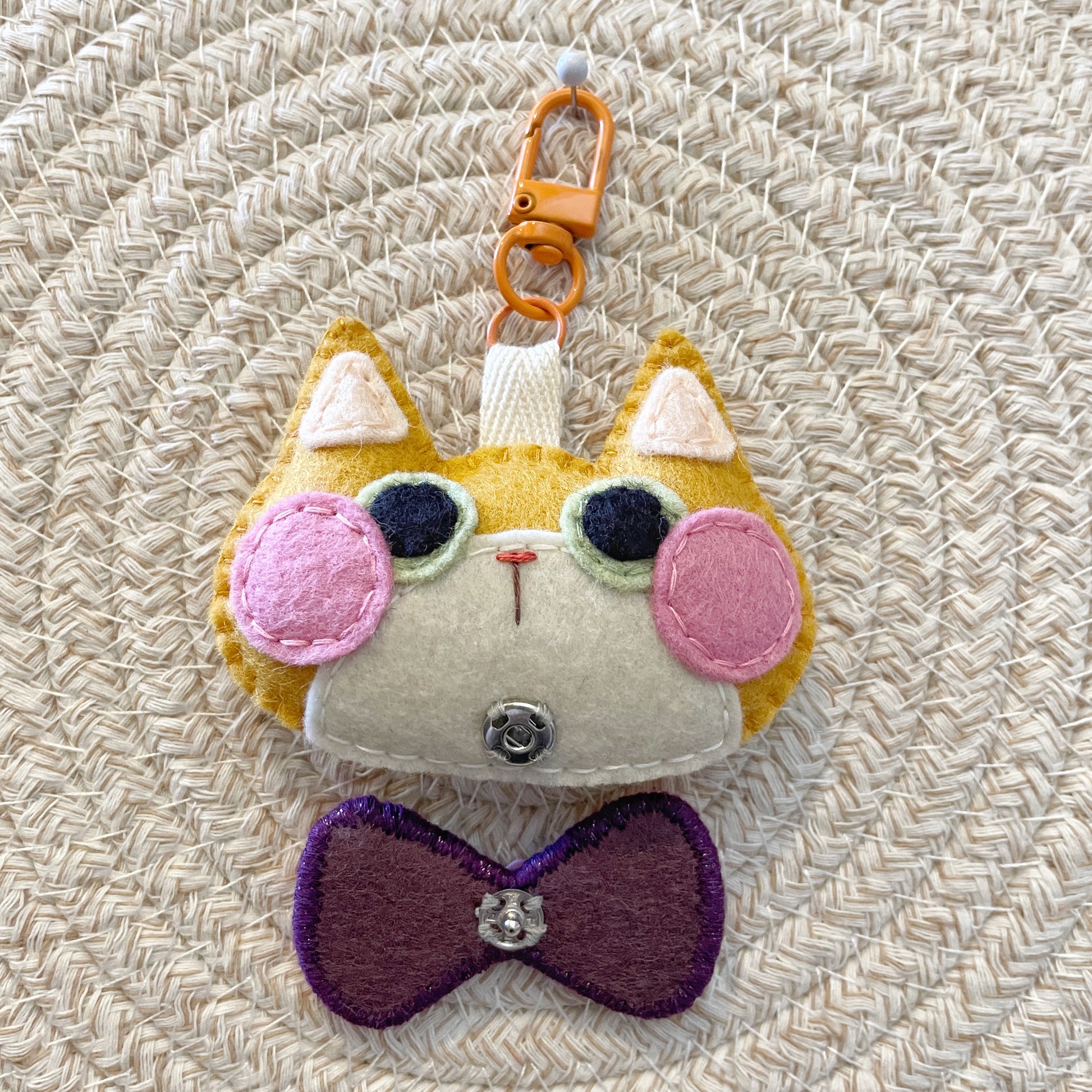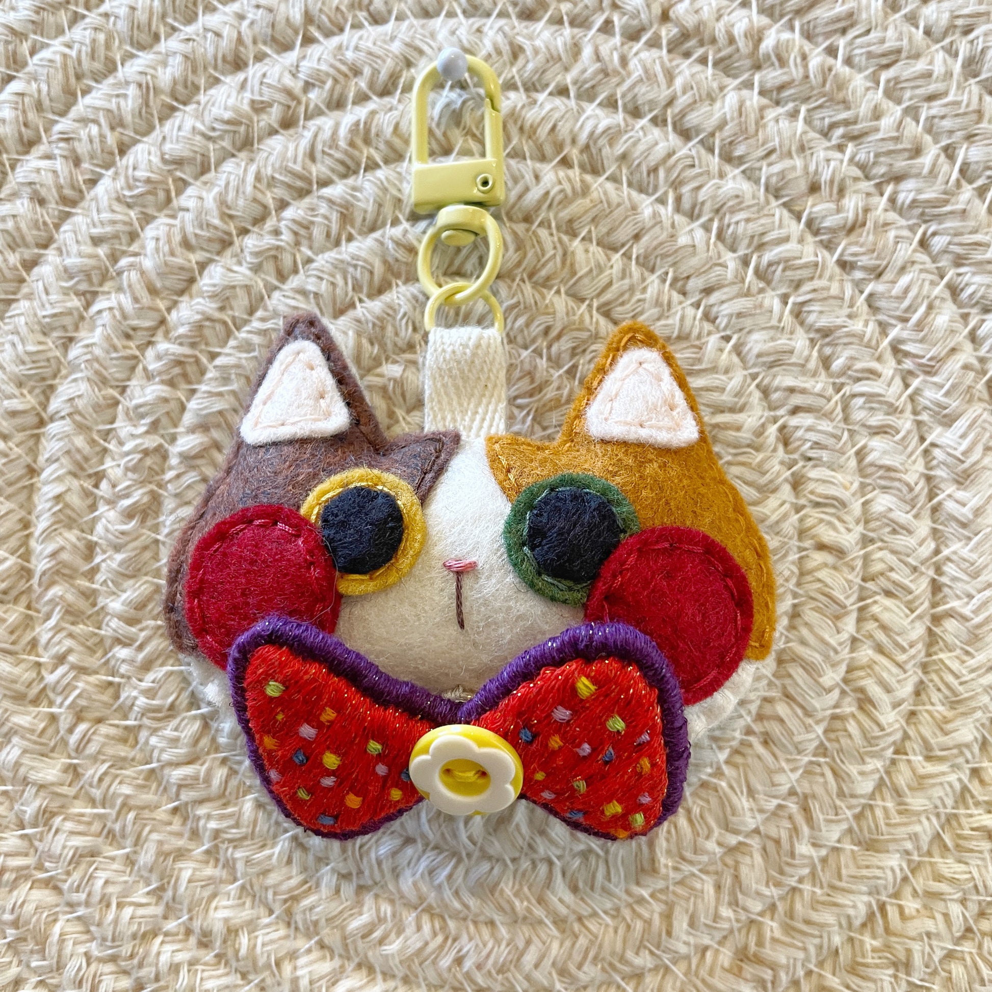 - Handmade felt plush keychain featuring a removable Pride flag themed bow-tie.