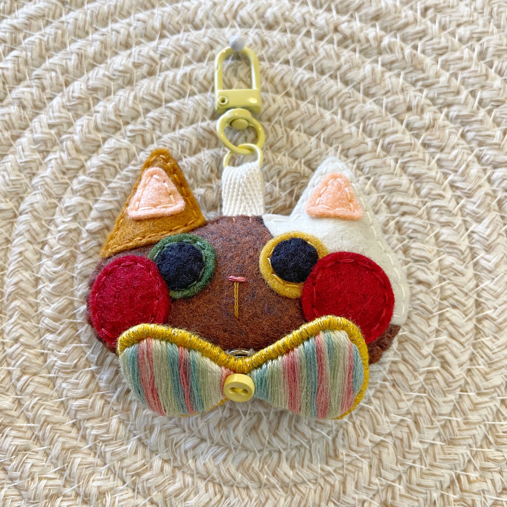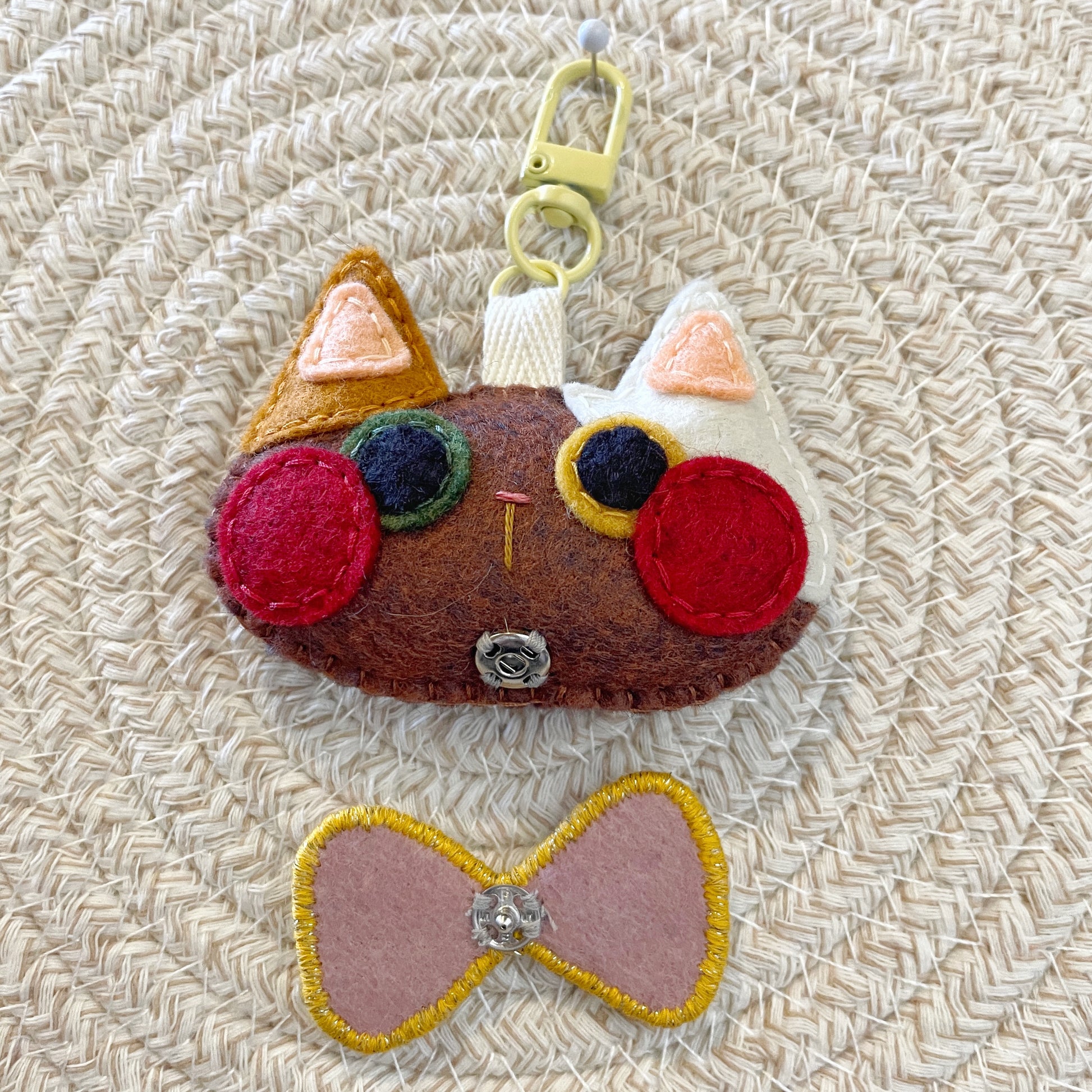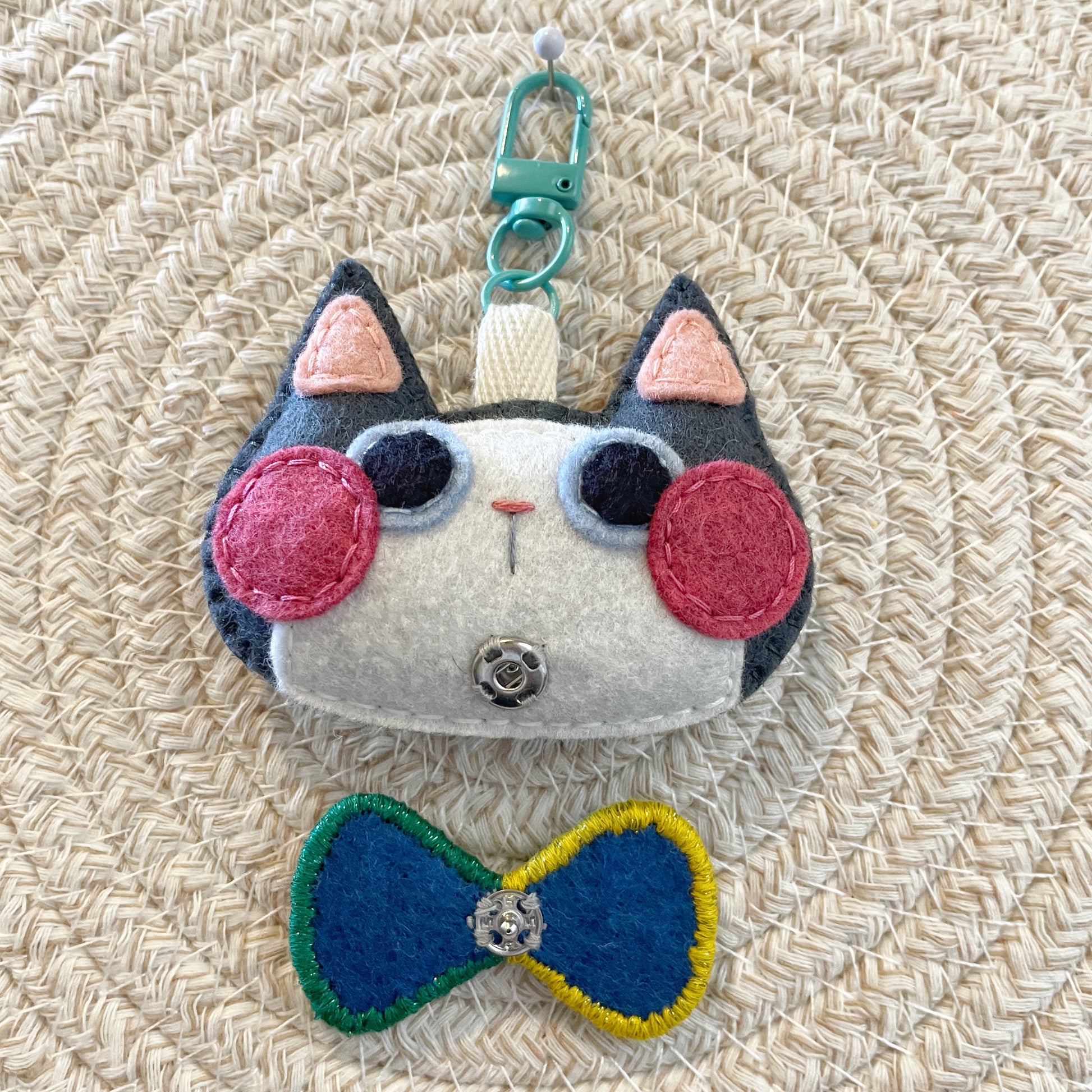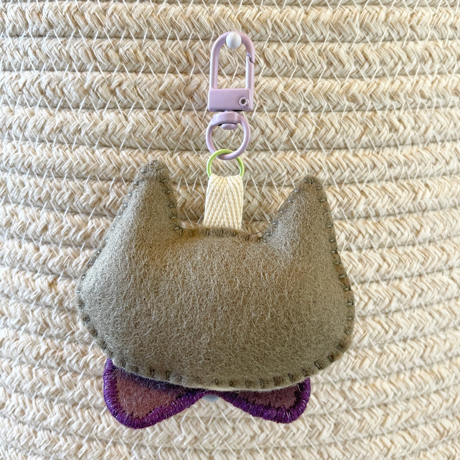 - Handmade felt plush keychain featuring a removable Pride flag themed bow-tie.