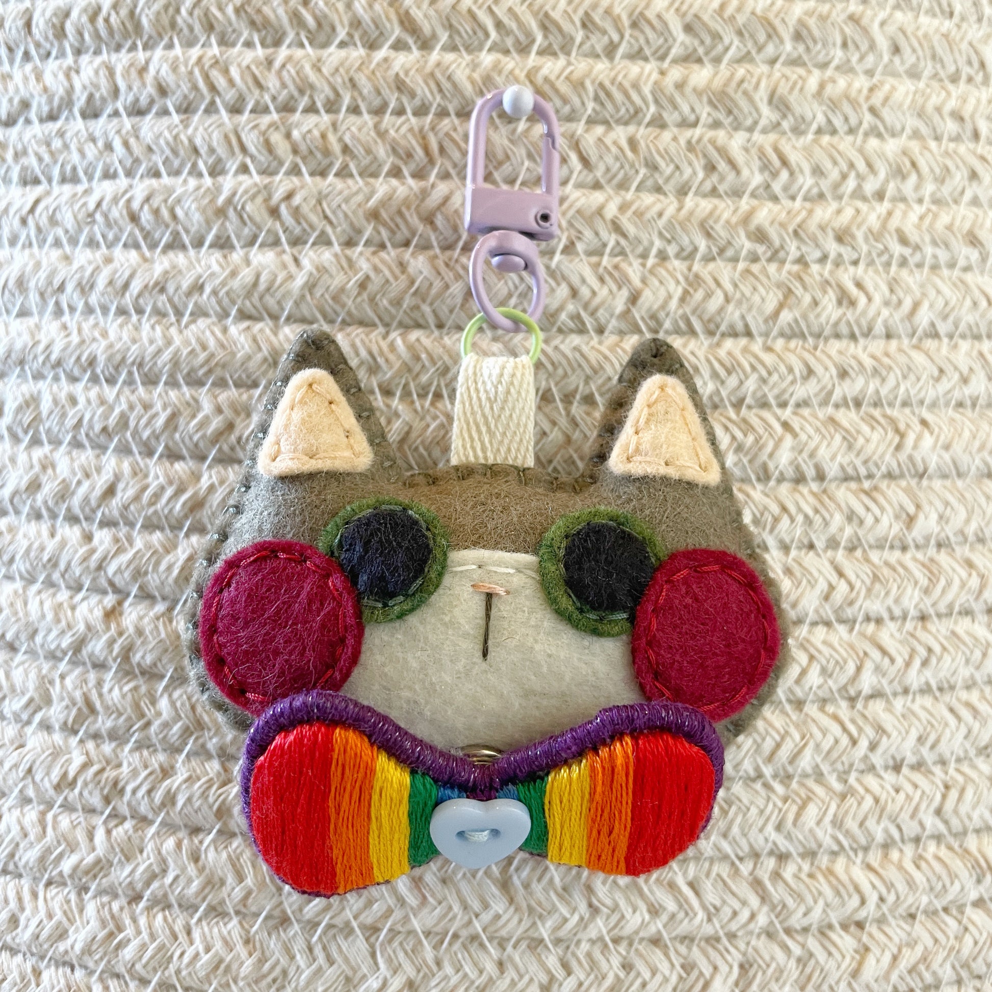 Pride Cat Felt Plush Keychain - Rainbow Flag
