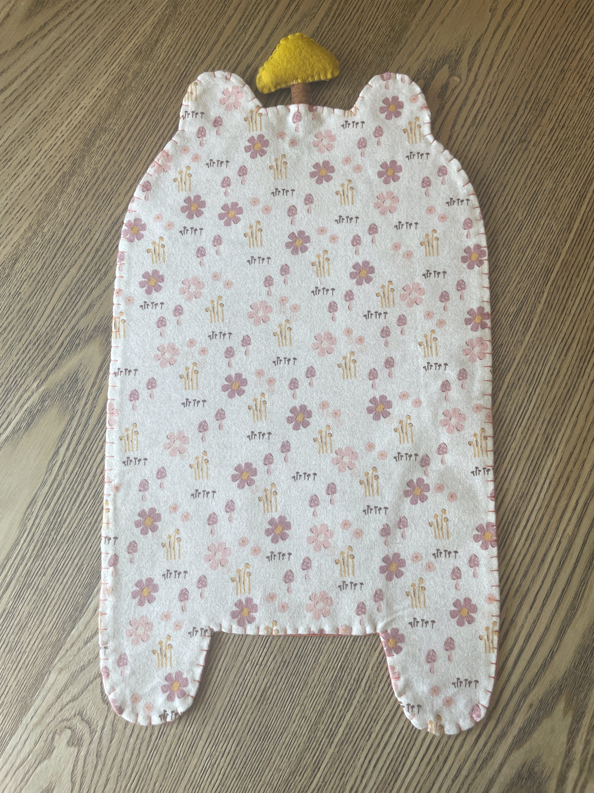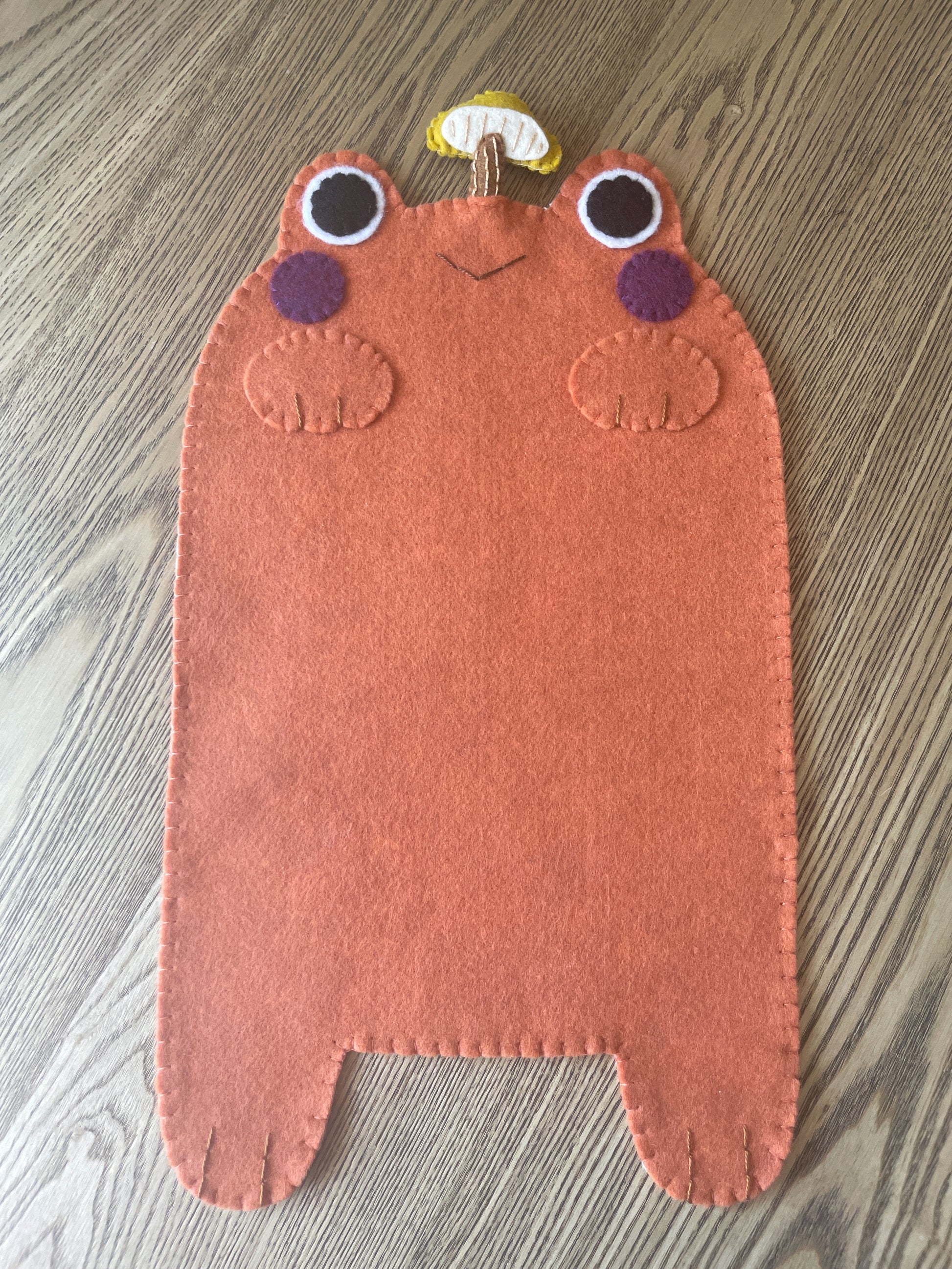 - The bodies are made from Kunin Eco-fi Plus Premium Felt. This felt is 100% polyester and made from recycled post consumer plastic bottles. It is thick and sturdy, making it perfect for supporting your pin collection! The face details and mushrooms are a mix of Kunin felt and various thinner wool felt. The mushrooms are stuffed with a basic fiber fill with hand embroidered details.