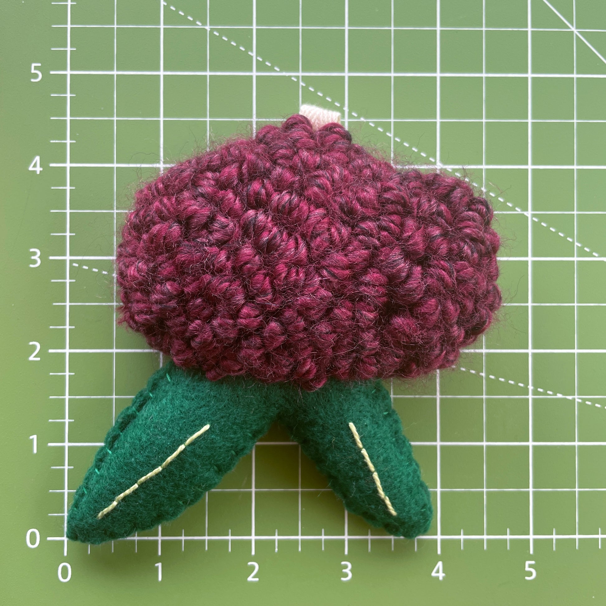 Small Purple Flower with Felt Leaves Plush Punch Needle Keychain
