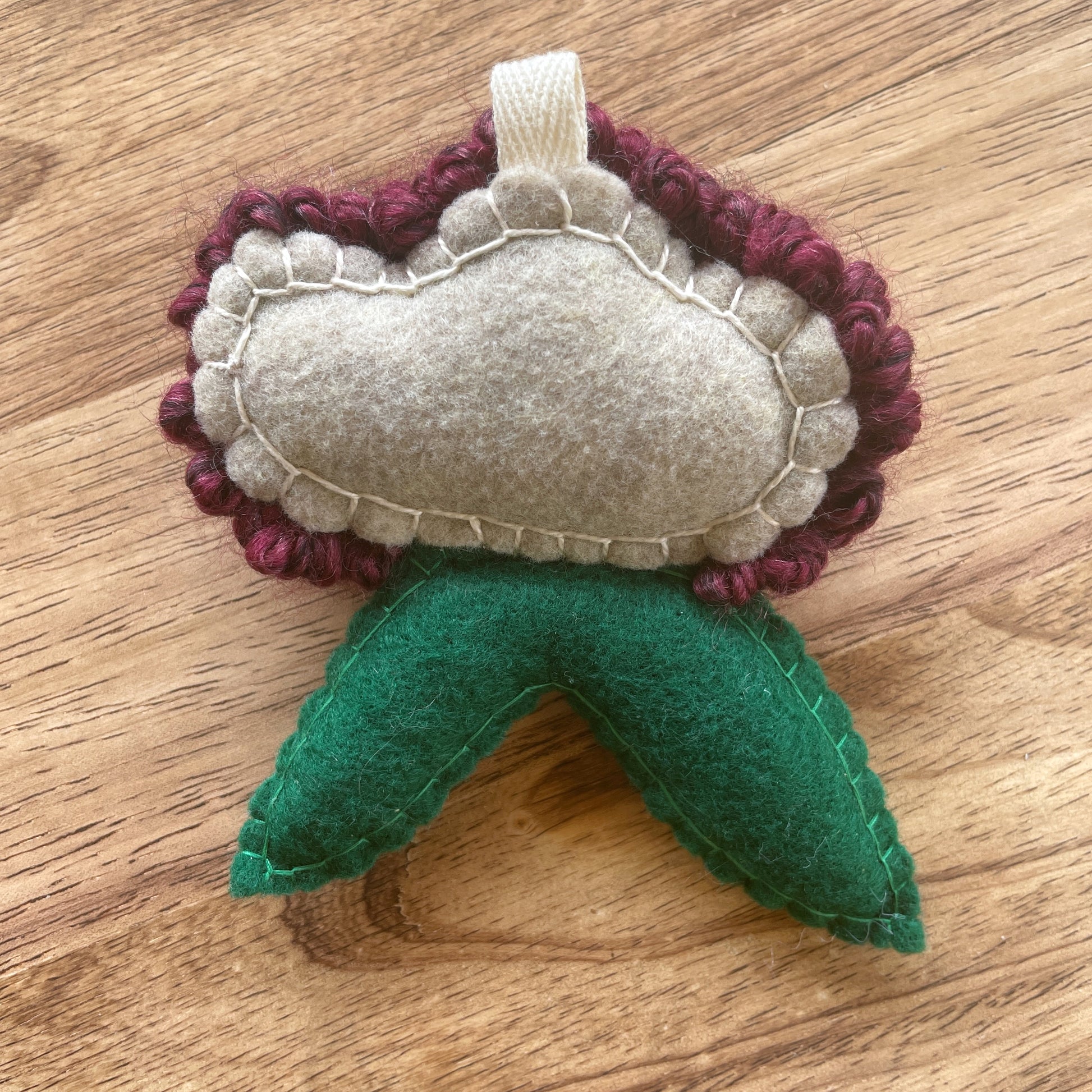 Plush felt leaves with embroidery thread details