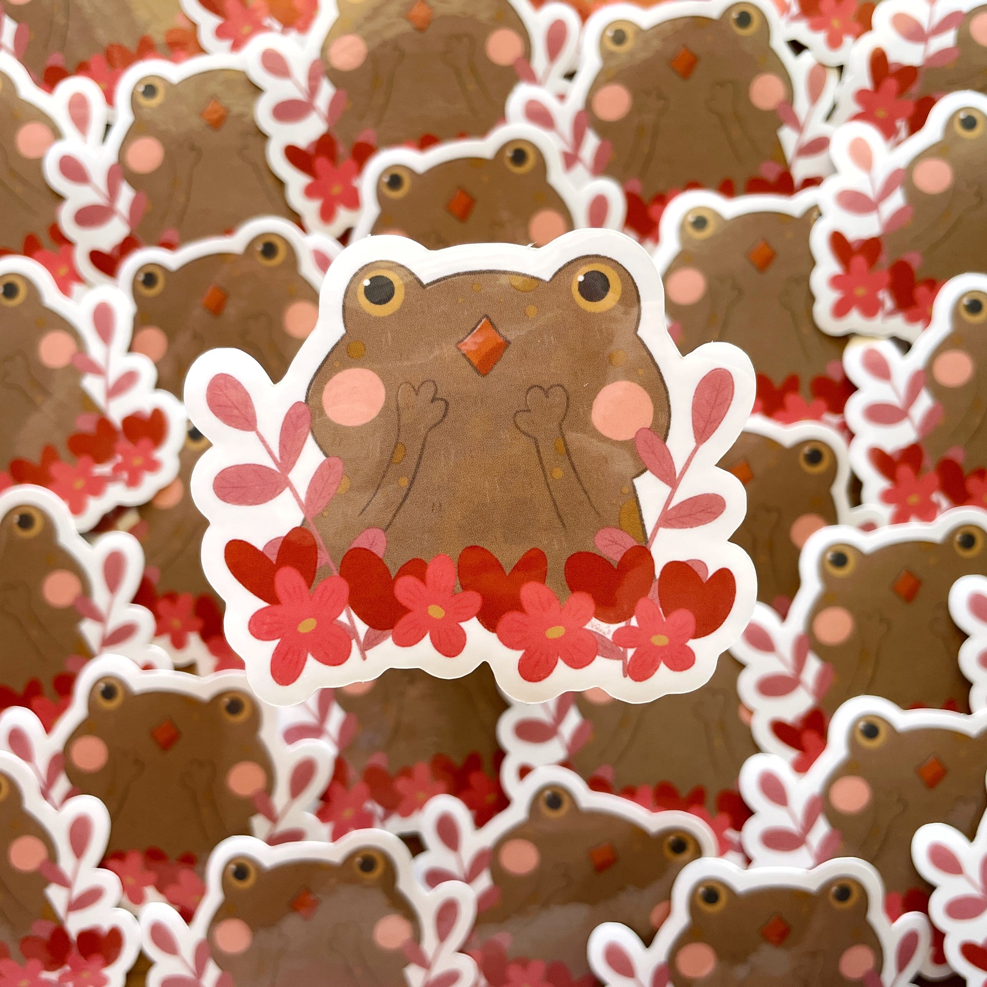 Toad with Hearts and Flowers Glossy Die-cut Sticker