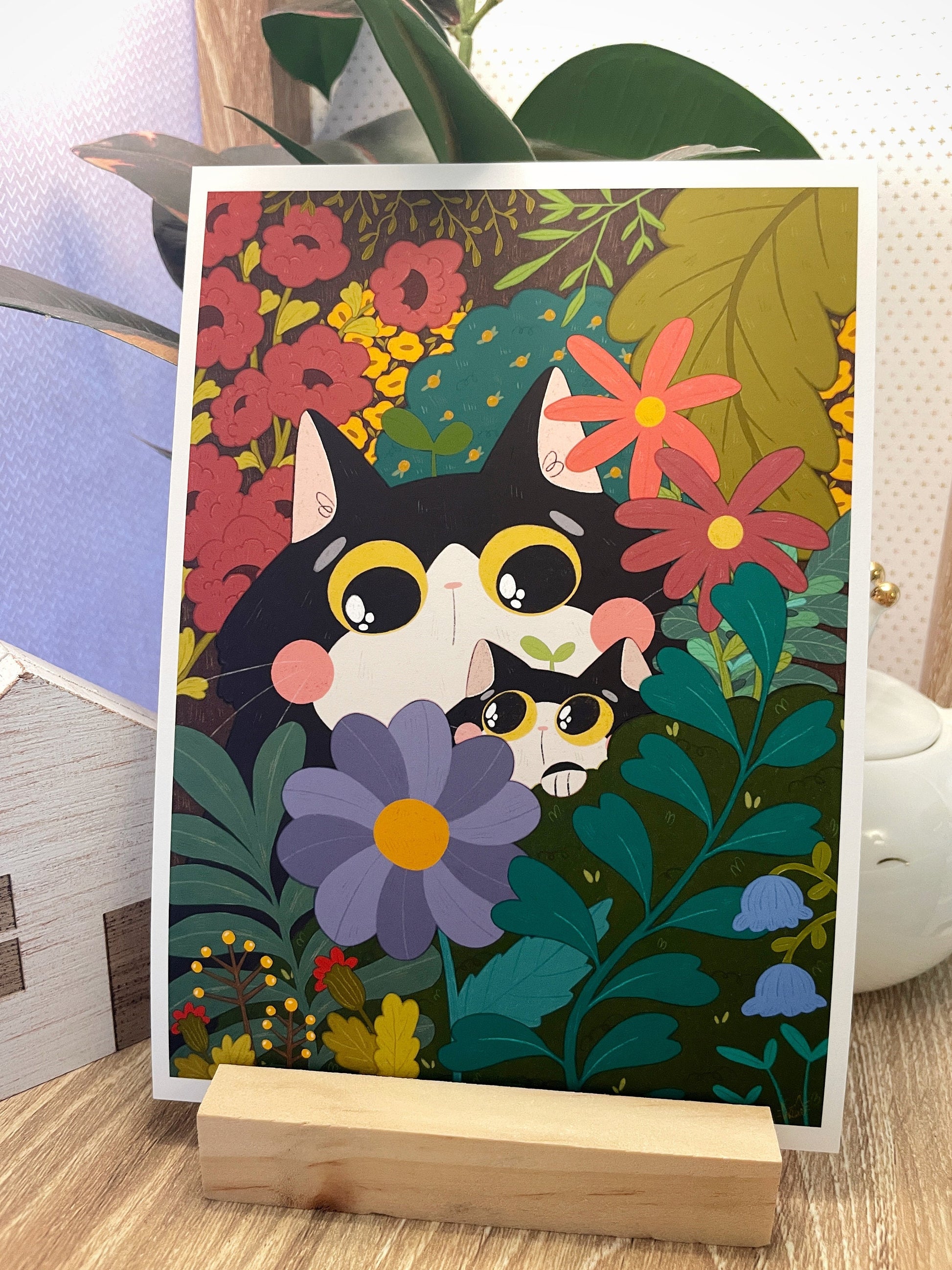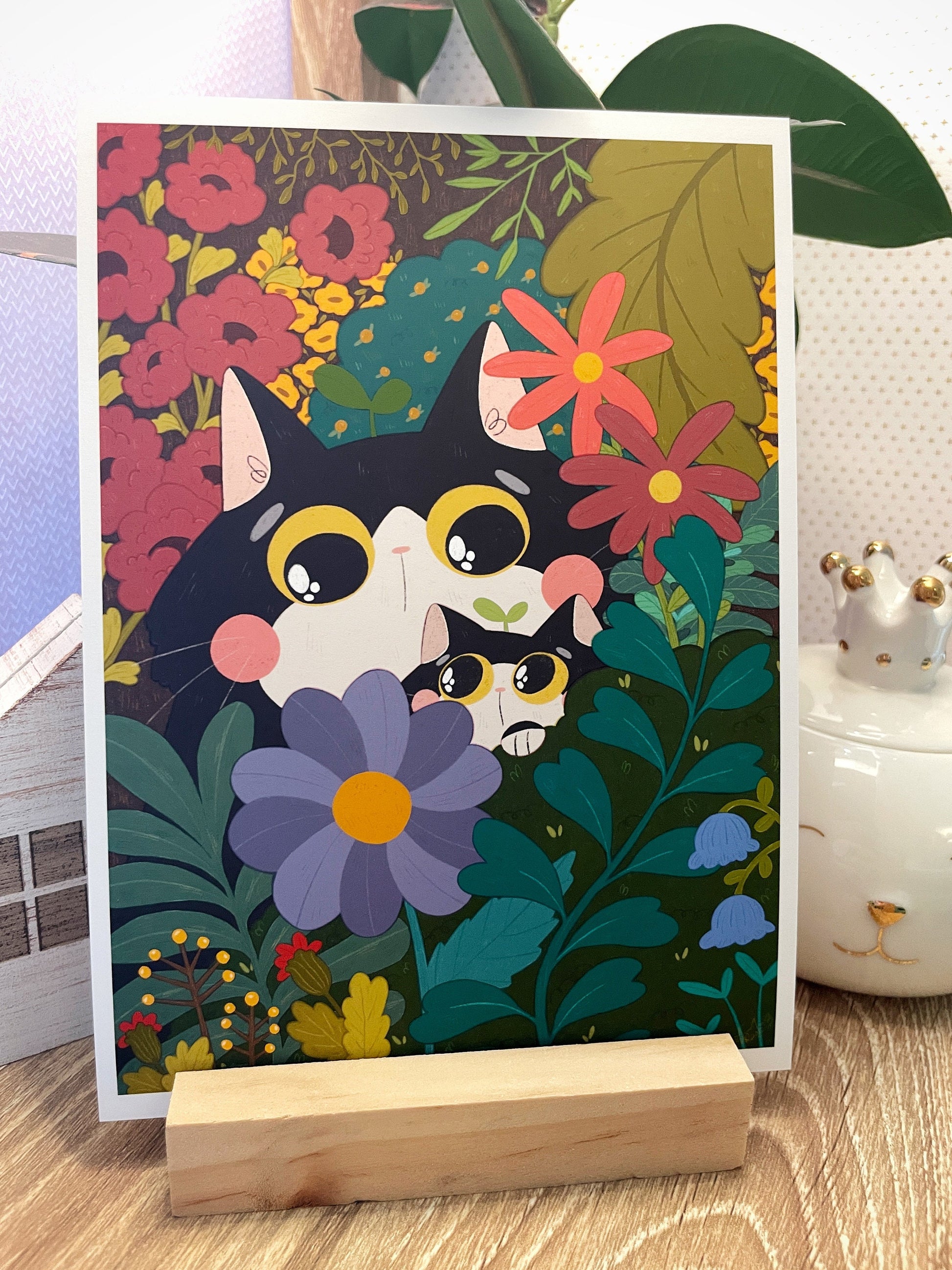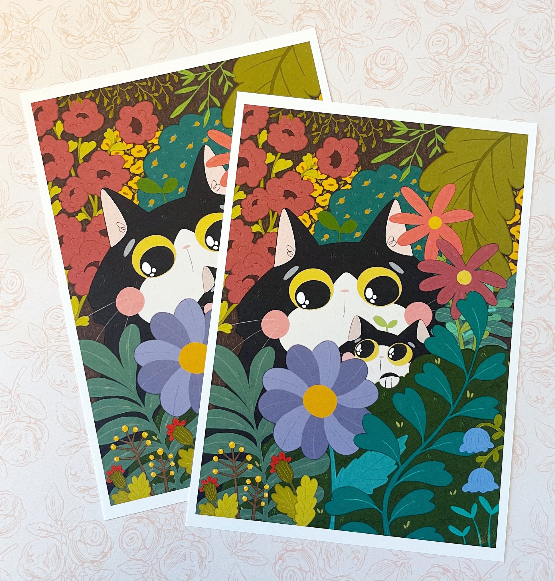 Tuxedo Cats Botanical Illustration Matte Art Print