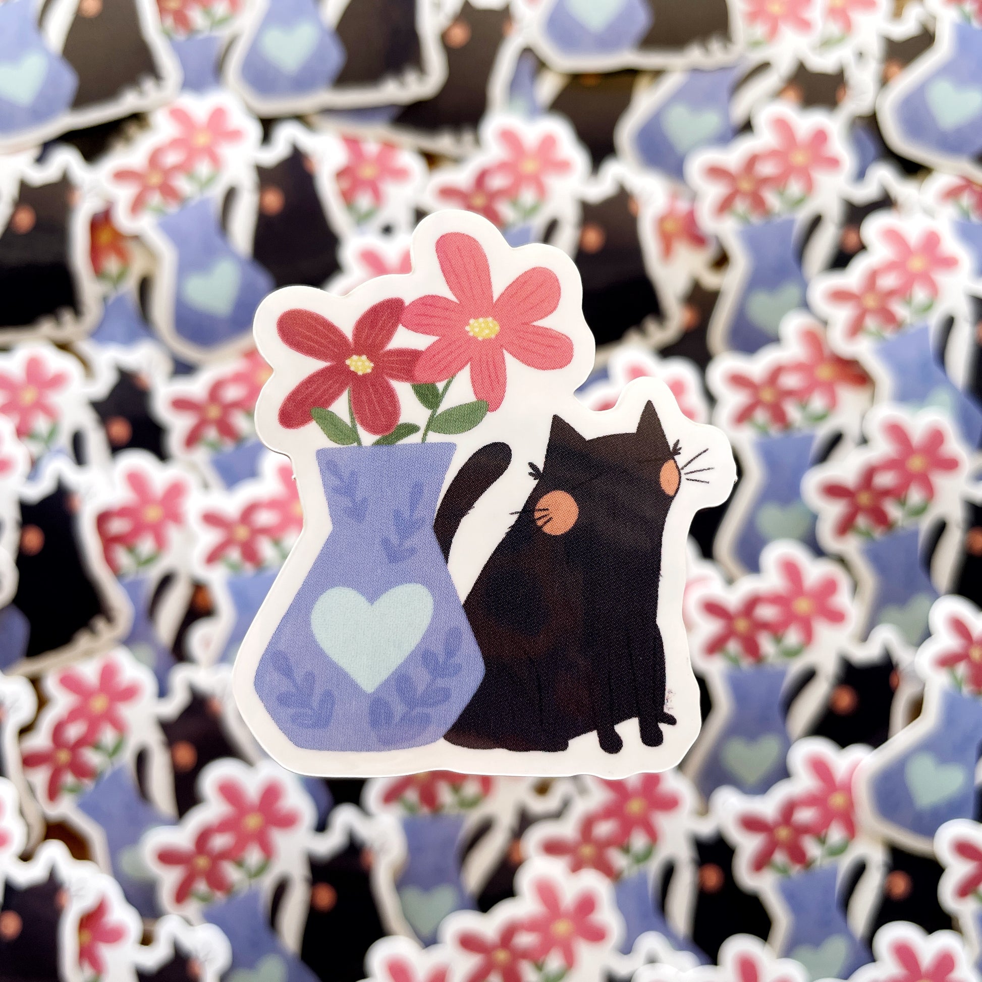 Black Cat with Blue Vase Glossy Die-cut Sticker